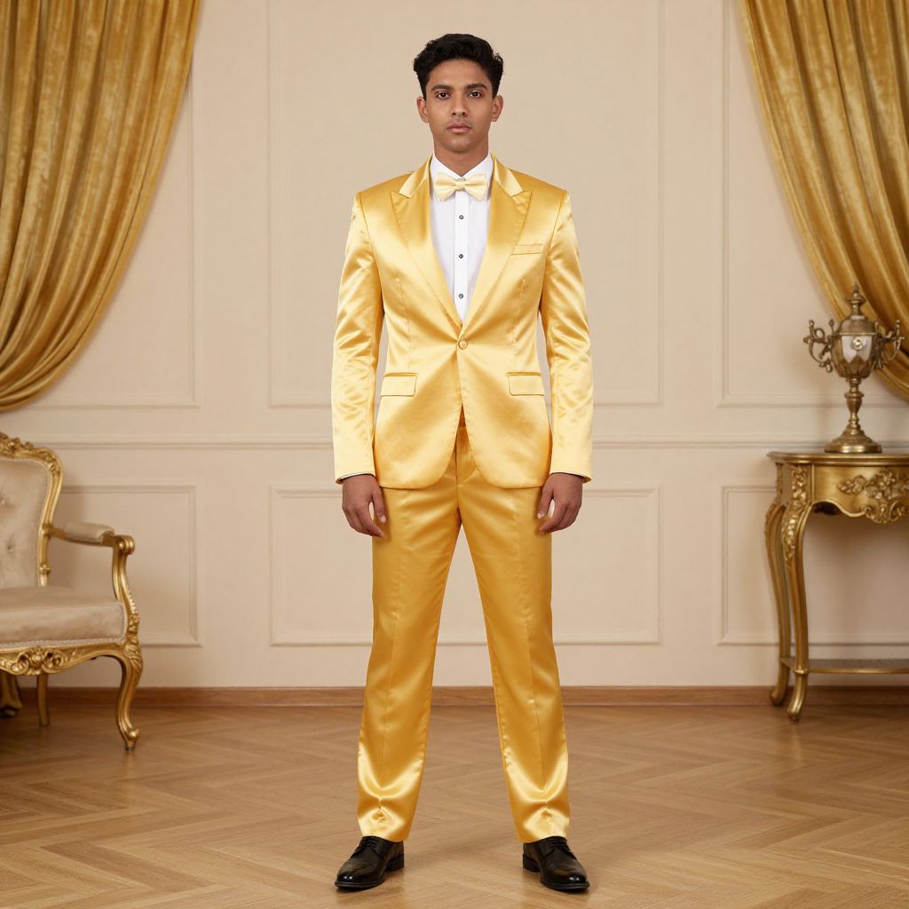 Golden Dress Costume, man in a yellow suit standing in a room