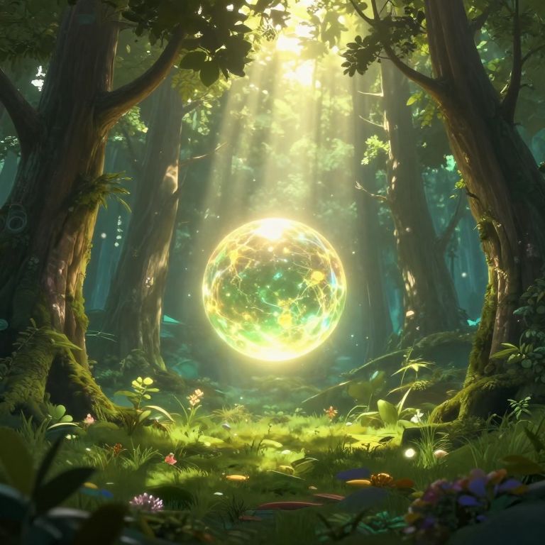 Running sprite darting through an enchanted forest, glowing ethereal light trails, vibrant green hues, magical particles floating, dynamic motion, fantasy art style