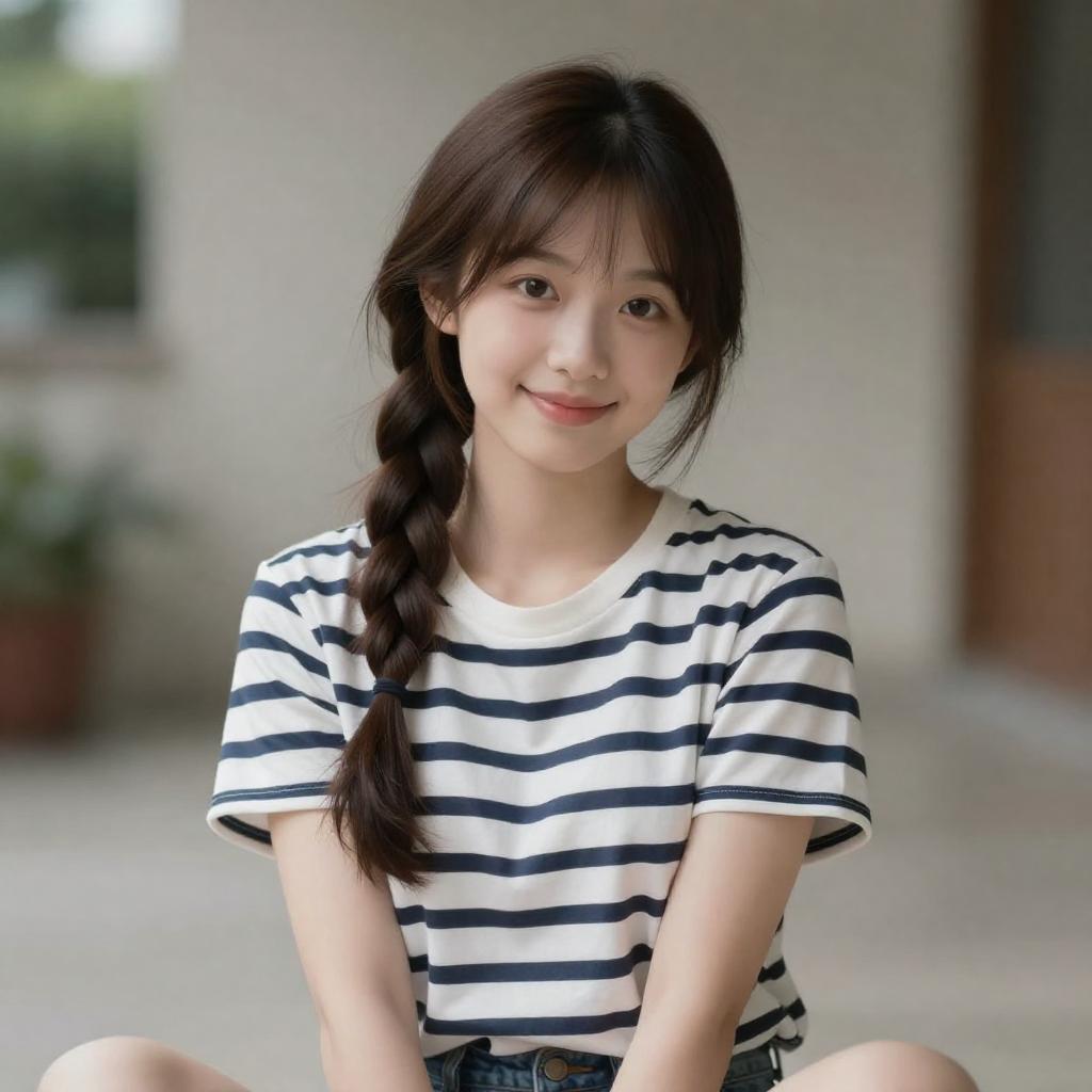 Photorealistic Smiling Girl in Blue Skirt