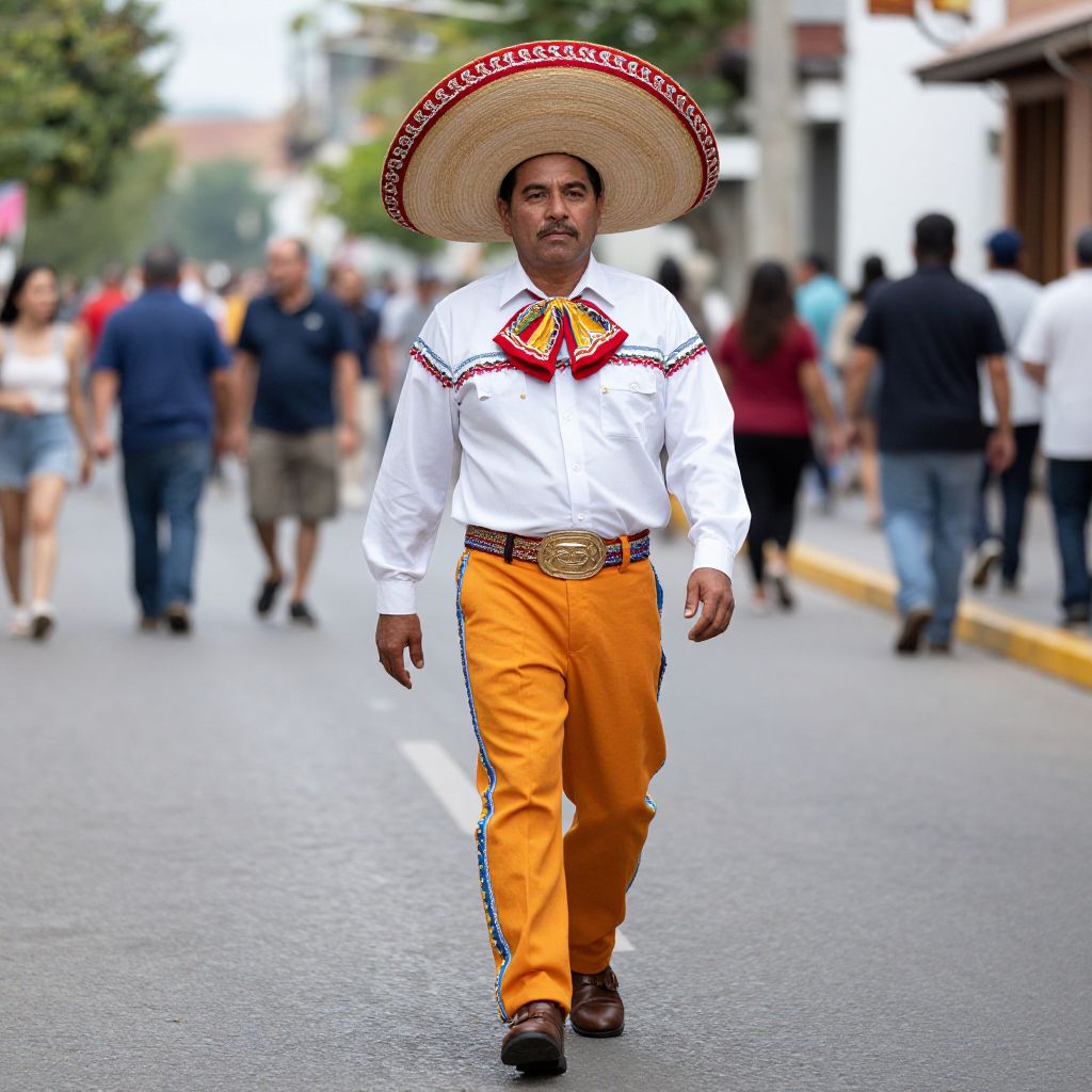 Loteria Chalupa Costume, dressed in a mexican costume walking down a street