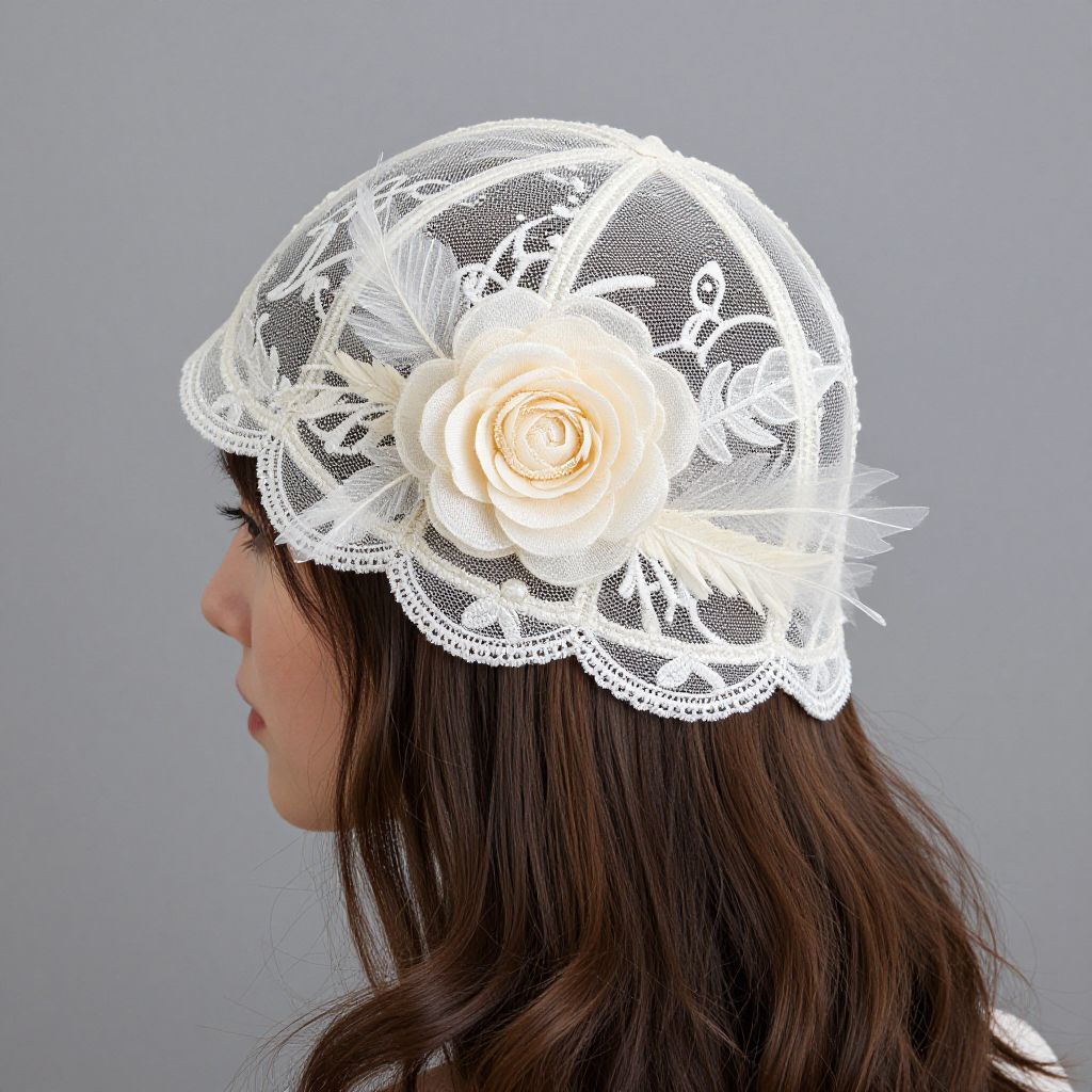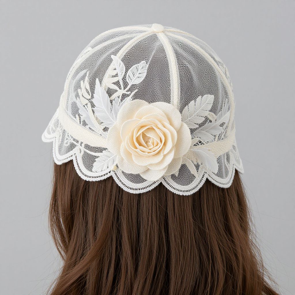 Elegant Embroidered Tulle Lace Cap