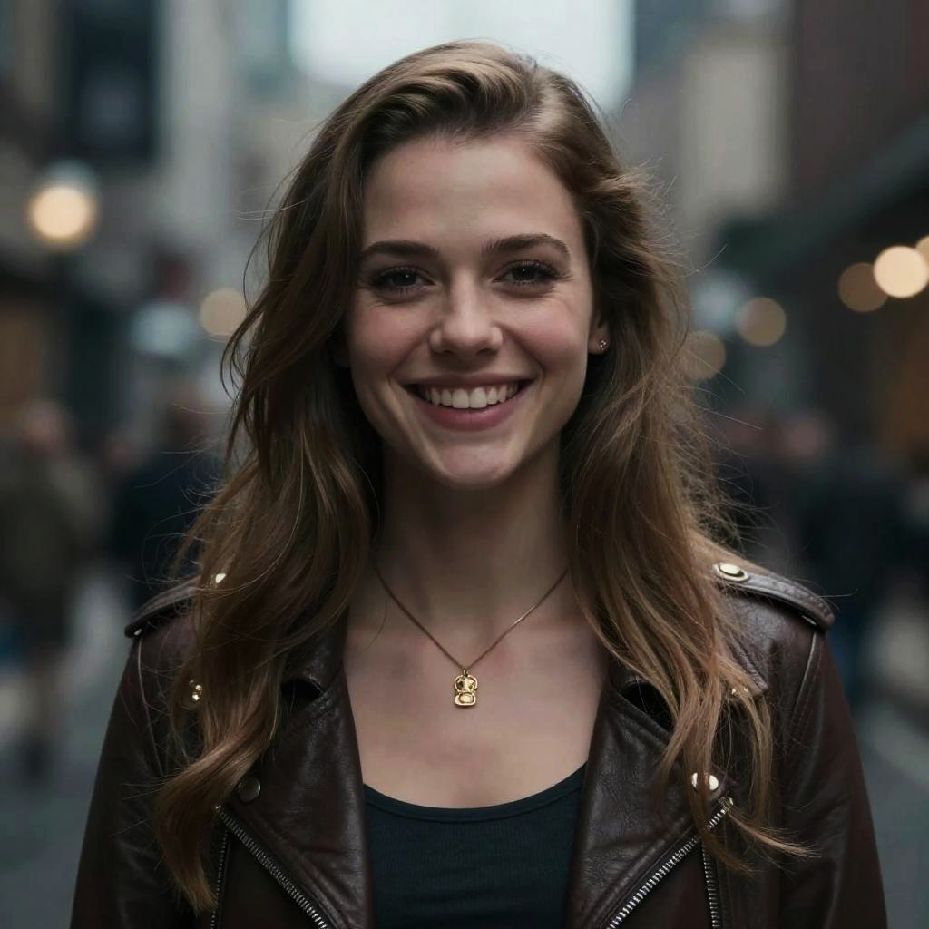 Photo of beautiful (M3gh4nS4r4h_HM-140:0.99), a woman, perfect hair, laughing, (modern photo), wearing black jeans, black button-up shirt, wool coat, portrait, 85mm, (analog, cinematic, film grain:1.3), (__advancedWildcardsScienceFictionKit_v10/advanced-science-fiction-locations__), detailed eyes, professional pose, painted lips, (epiCPhoto), (looking at viewer:1.1), (cinematic shot:1.3), (natural lighting, lit from above)