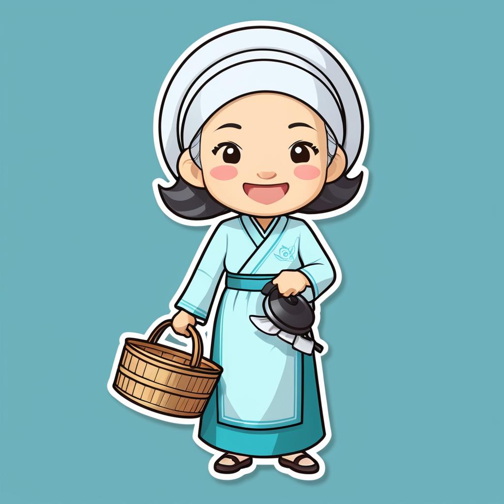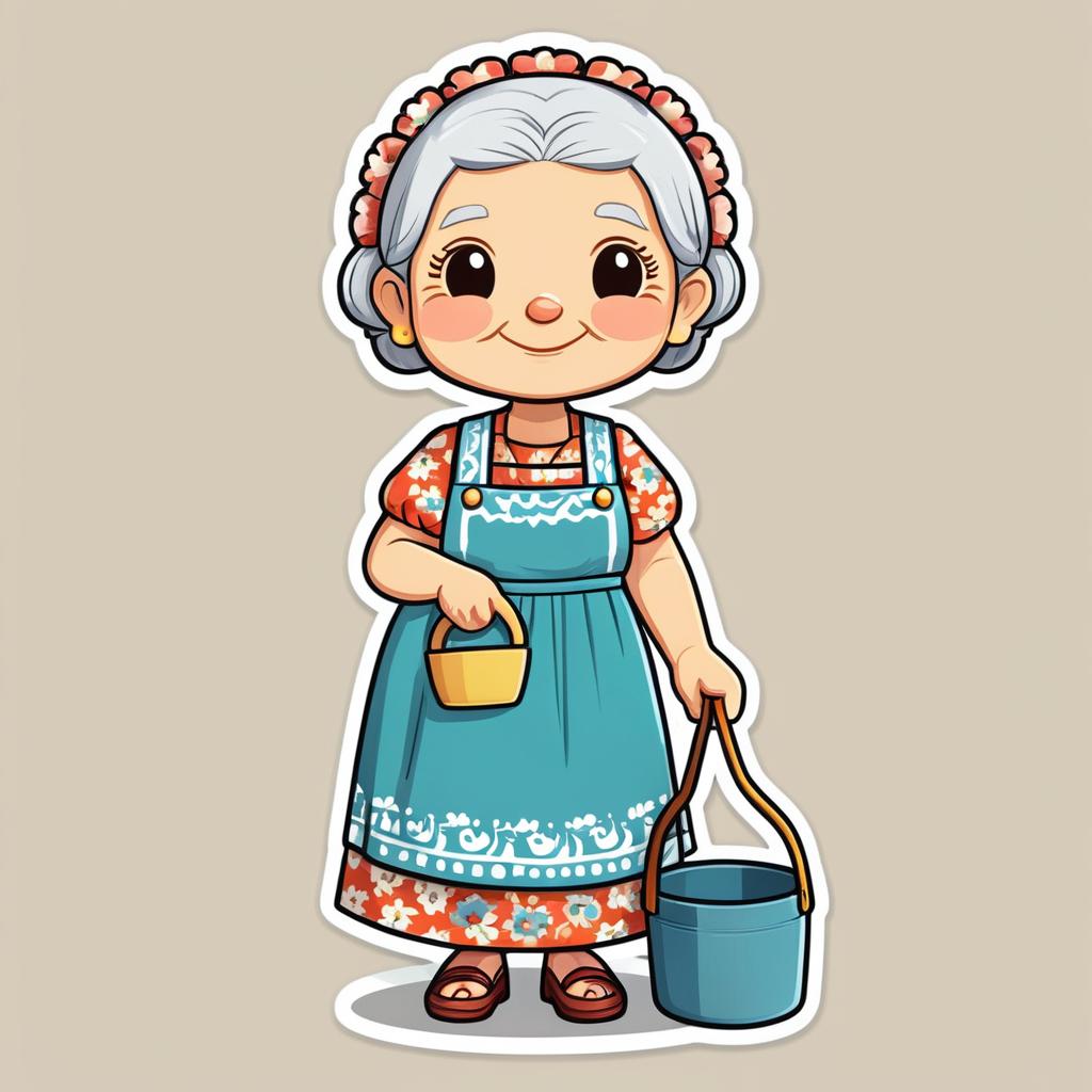 Cheerful Chibi Vietnamese Grandmother Character