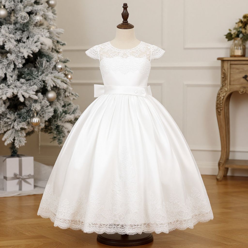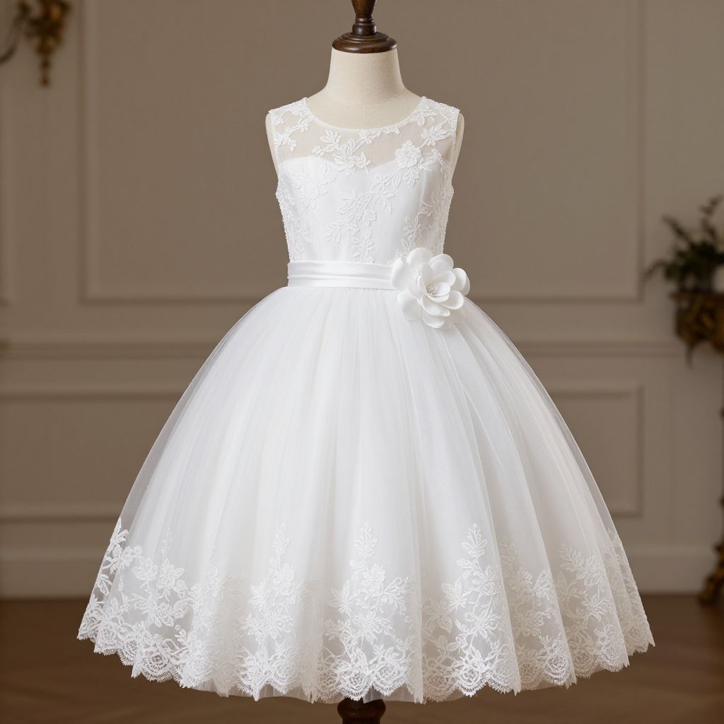 Elegant White Flower Girl Dress