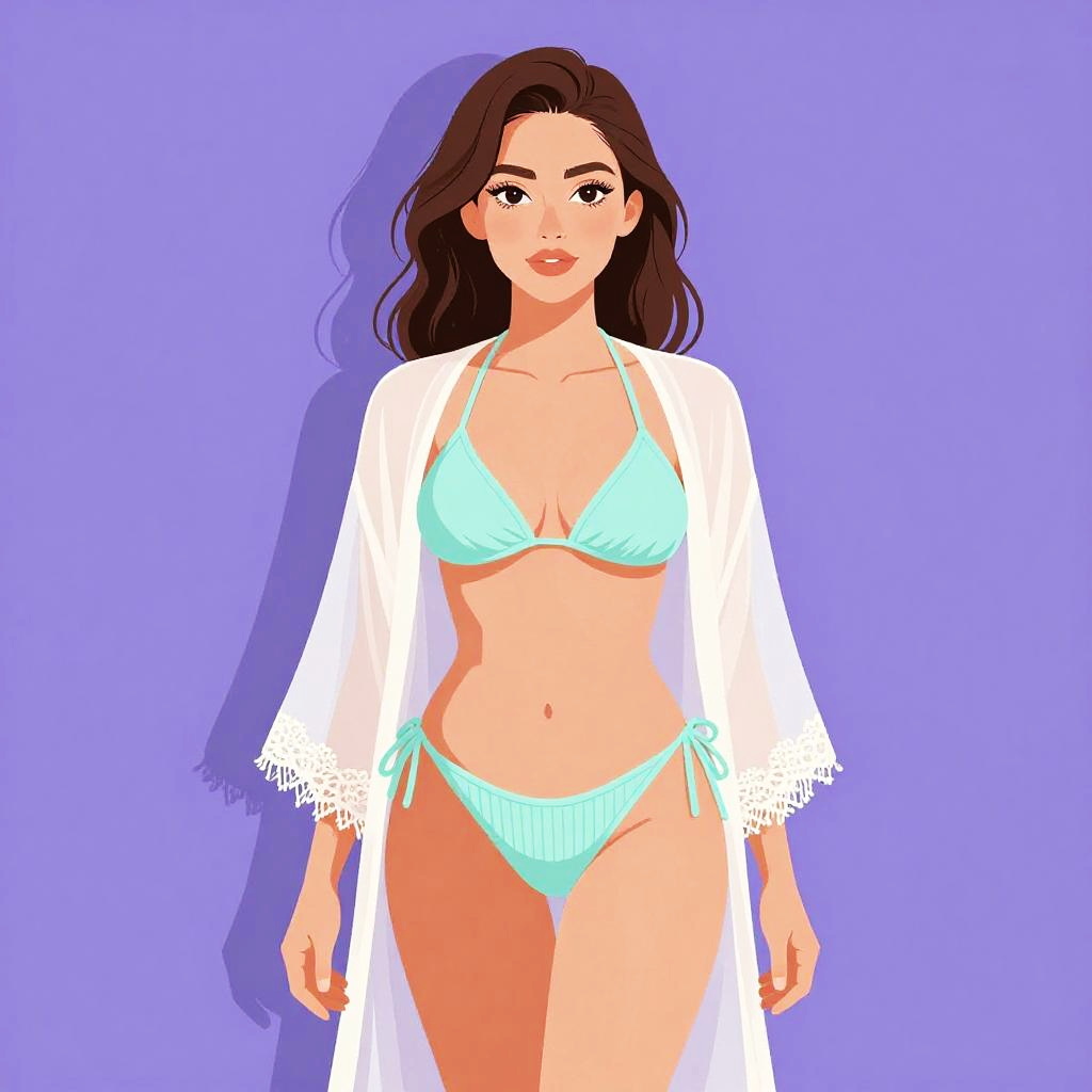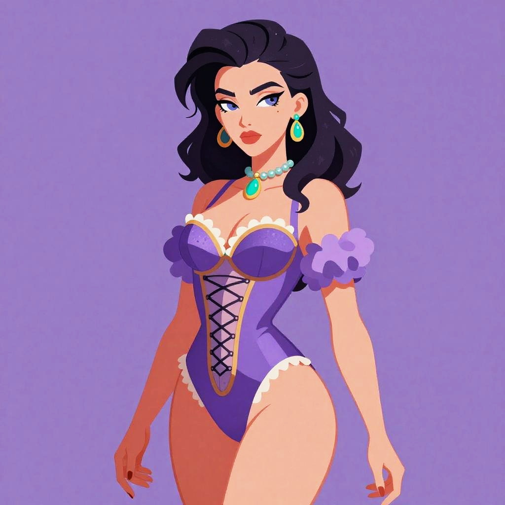 Woman with pretty face and pretty hair. Elegant lace teddy, sheer black lace, deep V neckline, intricate floral patterns, adjustable satin straps, open back design, delicate scalloped edges, matching lace garter belt, soft silk stockings, rich burgundy color accents. --sref 1461