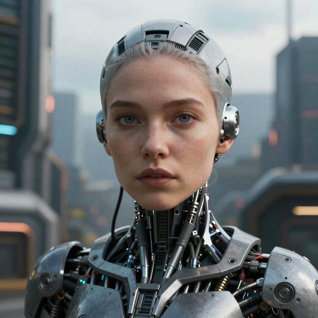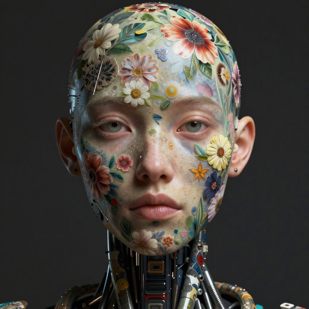 Post-Human Cybernetic Non-Binary Futurist Portrait