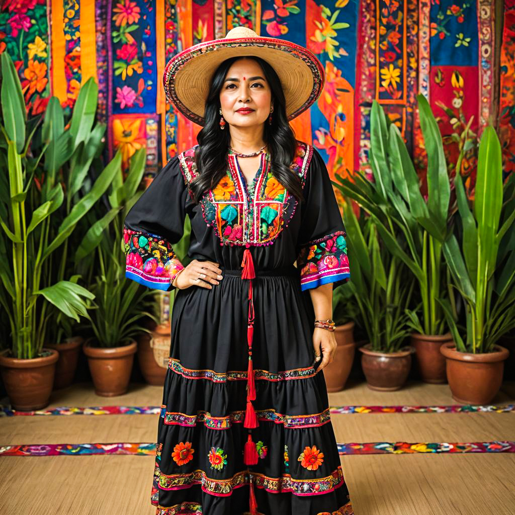 Mature Woman in Vibrant Mexican Traditional Outfit