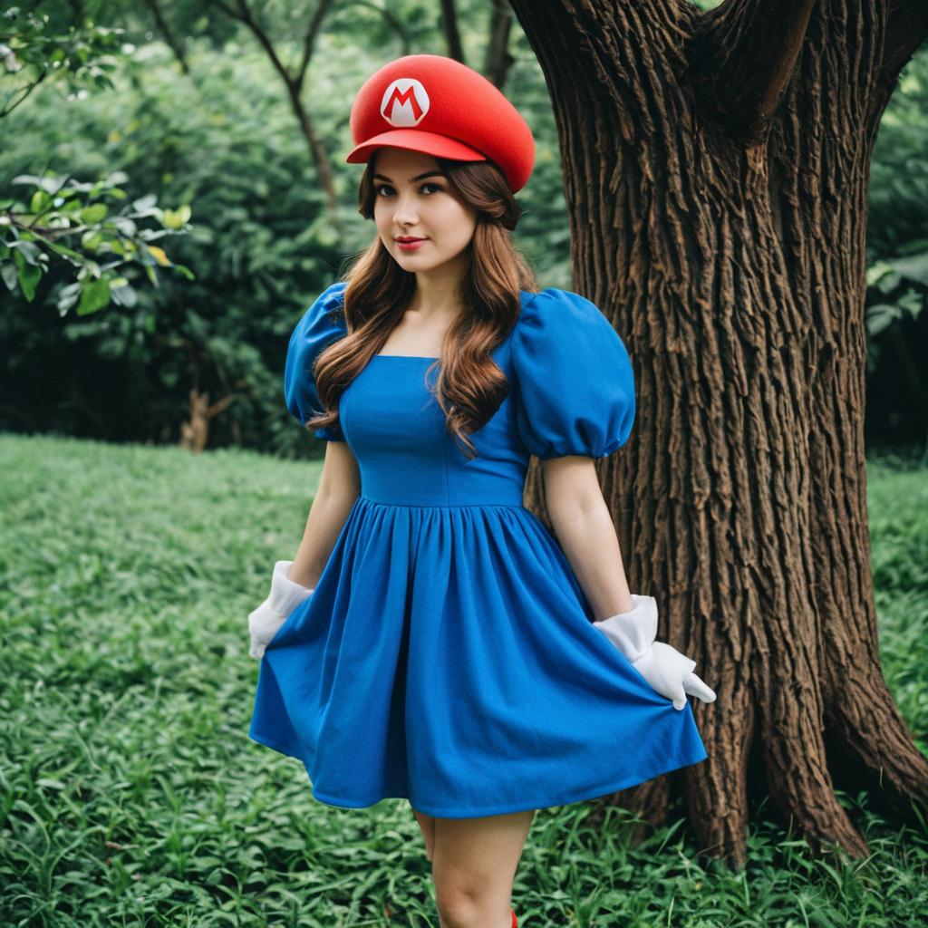 Realistic Luigi Costume Girl Outdoor Pose
