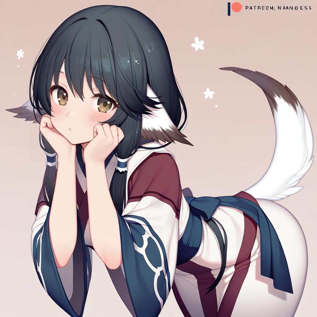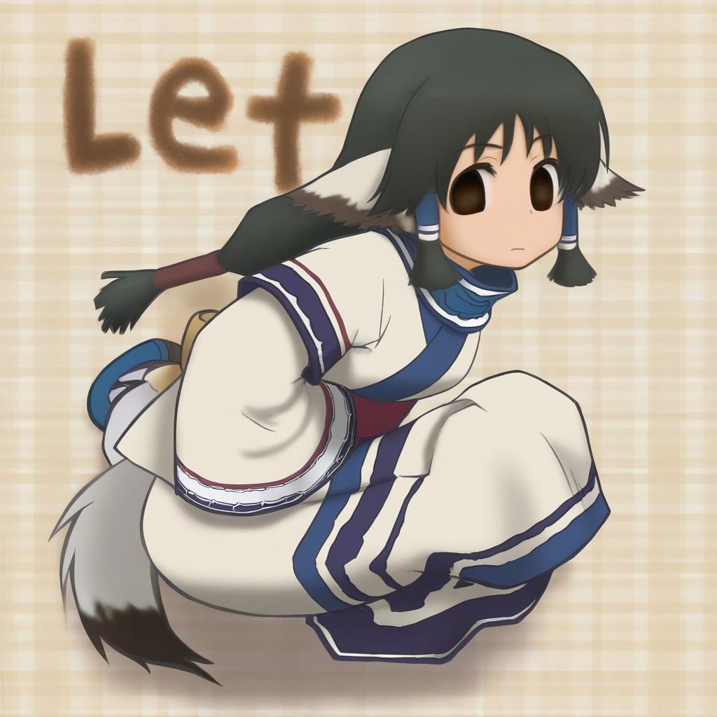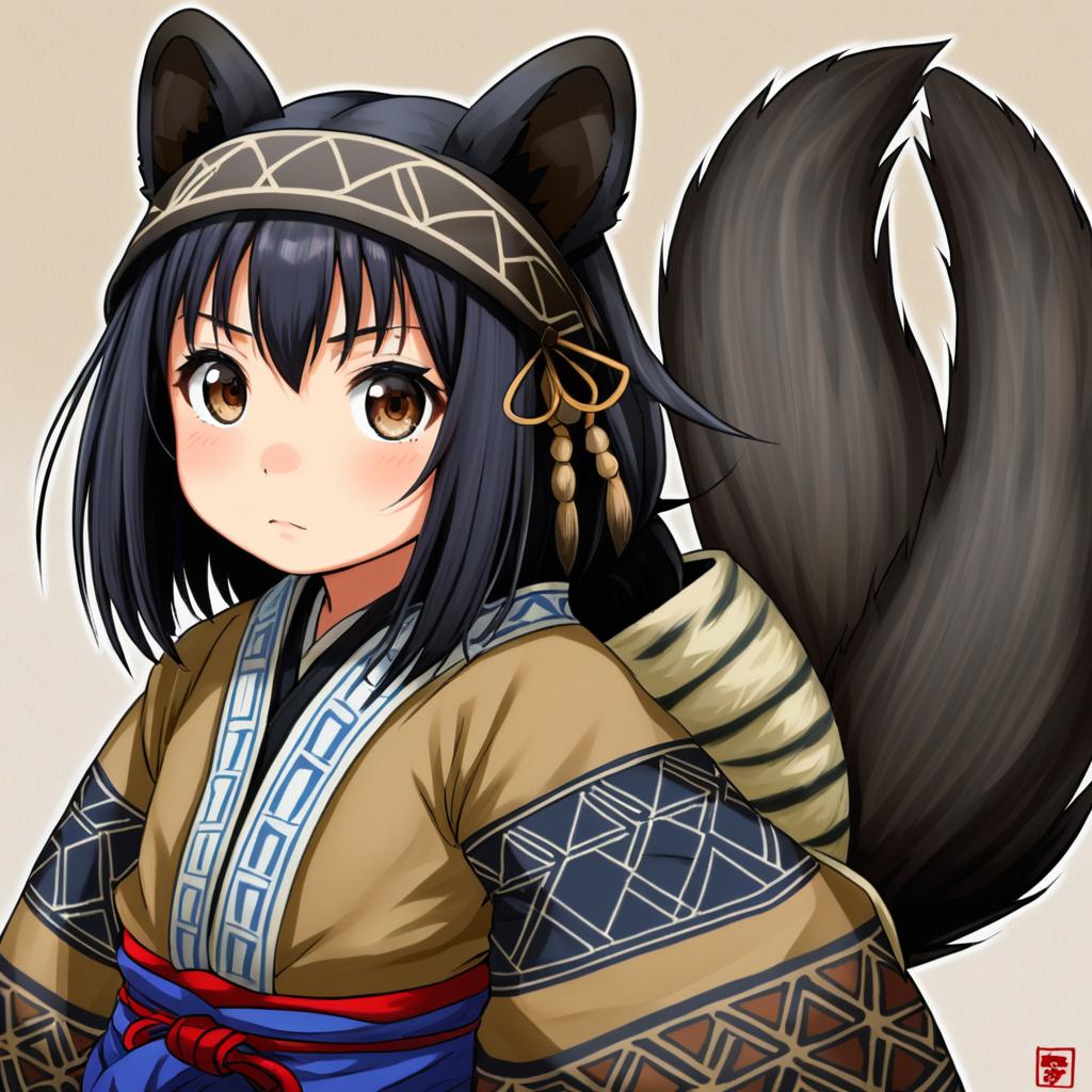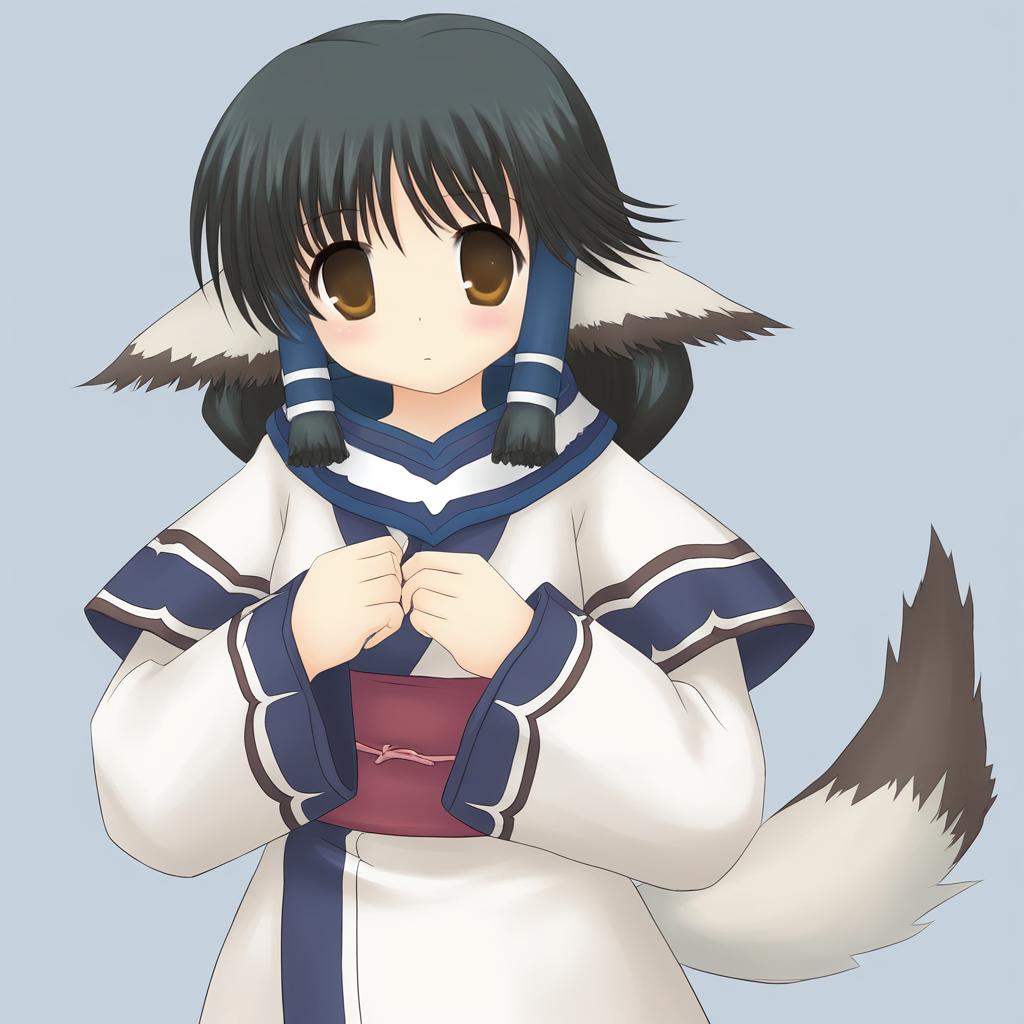 Aruruu, utawarerumono, 1girl, dog ears, tail, brown eyes, black hair, ainu clothes, ainu clothes, by artist kadose ara, illustrious