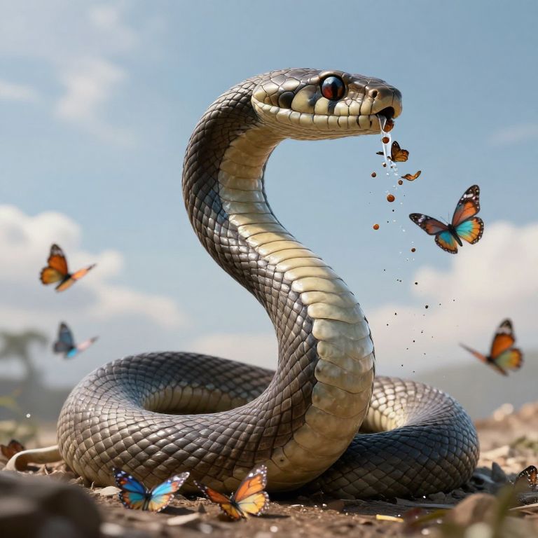 An enormous snake coiled around the sky, shedding its skin in showers of butterflies that dissolve into liquid stardust upon landing.