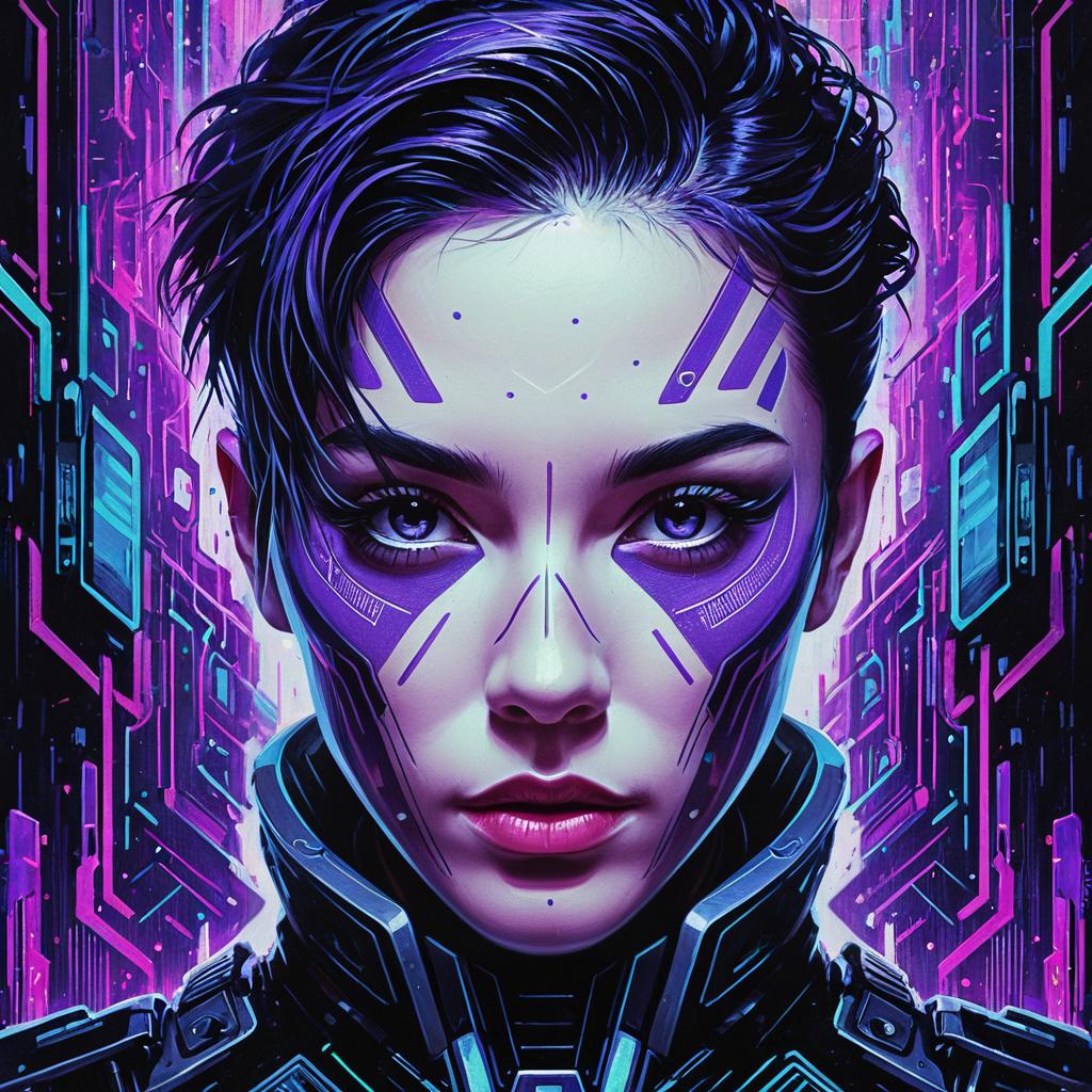 Close-up portrait of a serious male scientist with intense blue lighting, wearing a white lab coat. The background features a complex arrangement of laboratory glassware and scientific equipment, emphasizing a high-tech or futuristic lab setting.