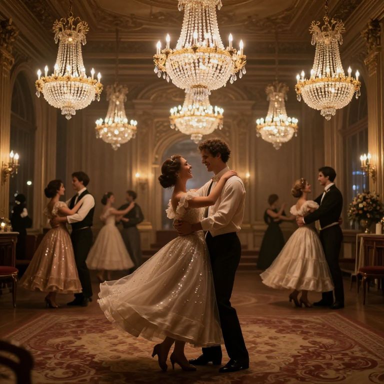 Chandeliers of crystalline laughter suspended in time, their golden glow casting whispers of forgotten dances upon the carpeted floor, where echoes of joy linger like a haunting melody in an abandoned ballroom.