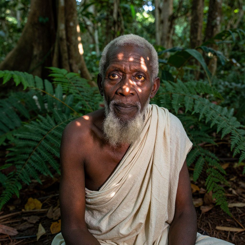 Portrait of Wise African Sage in Rainforest