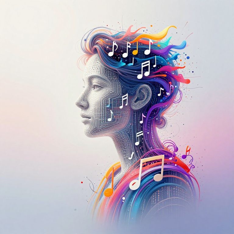 AI music cover generator theme, portrait of an AI composed of musical symbols and binary code emerging from a digital canvas, soft gradients with a splash of vibrant colors, blending technology and music art styles, sleek modern aesthetic, high resolution