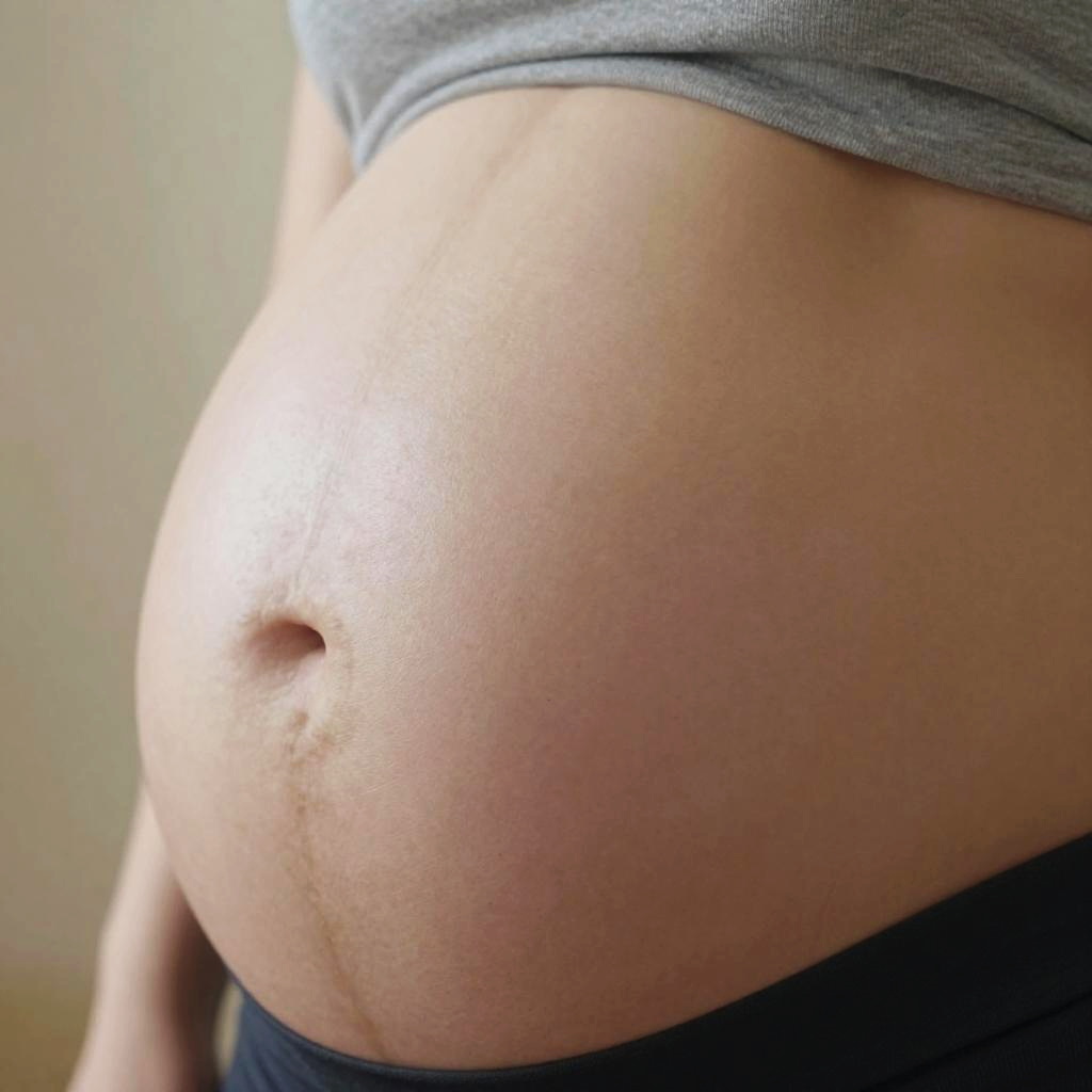 World record pregnant belly, ultra-realistic close-up, natural skin texture, soft lighting, focus on belly shape and stretch marks, calm serene background, high detail