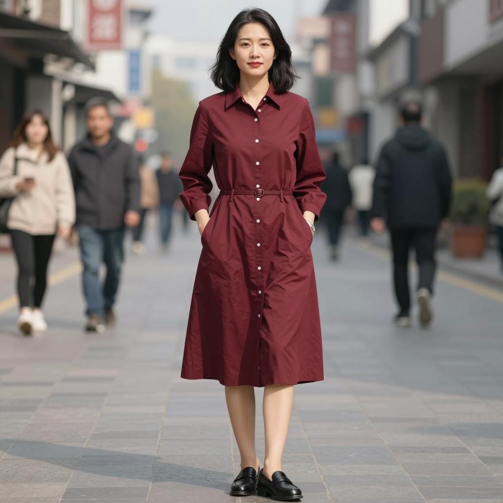 Clockwork orange costume, digital art, anime style, full body, Asian woman, standing, traditional Japanese alleyway, vibrant orange dress, short puffy sleeves, high collar, buttoned front, black belt with large buckle, orange gloves, orange boots, orange hat with feather, intricate blue and red designs, lanterns in background, blurry pedestrians, motorcycle on left, sunlight filtering through roof, autumn foliage, realistic ures, symmetrical composition, sharp contrast, detailed clothing folds, rich colors
