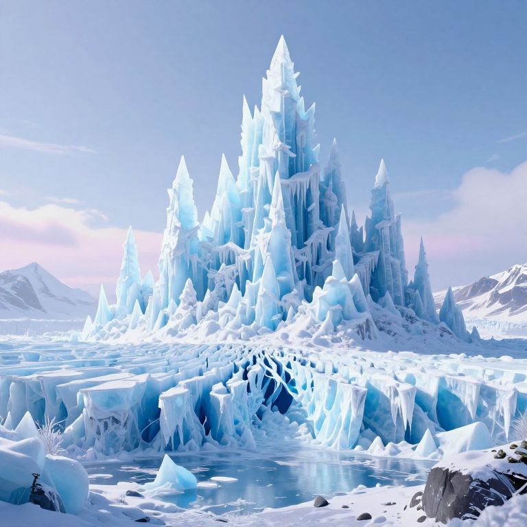 Inkpunk Anime, blue and white theme, icy snow-covered landscape, Artemis Station at the edge of an icy ocean with icebergs, its sleek towers a stark contrast to the snow surrounding it, with a harbour featuring research ships moored, The planet’s sun casts a vivid, surreal light across the station, while deep fissures filled with glaciers mark a stark background, The sky is a dark blue, with a moon hanging low in the horizon