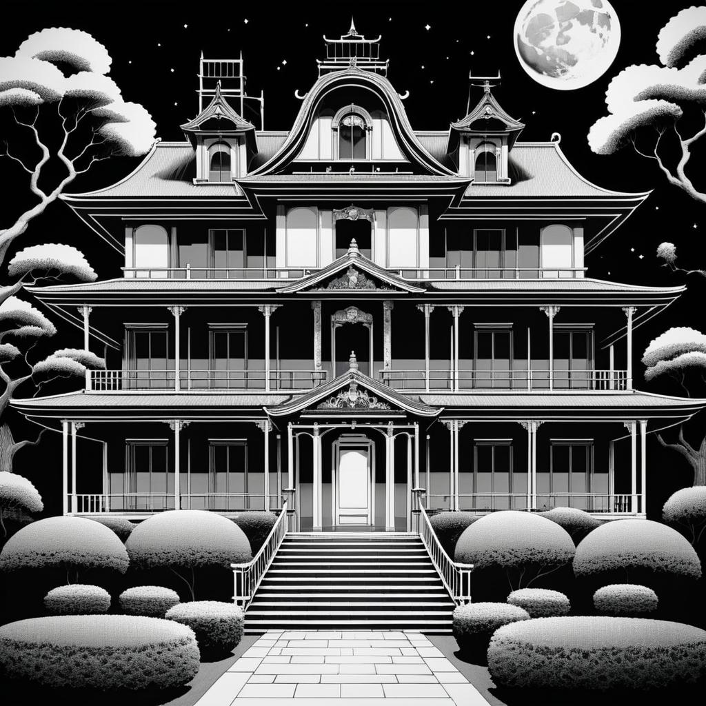 Manga-Style Haunted Mansion with Full Moon