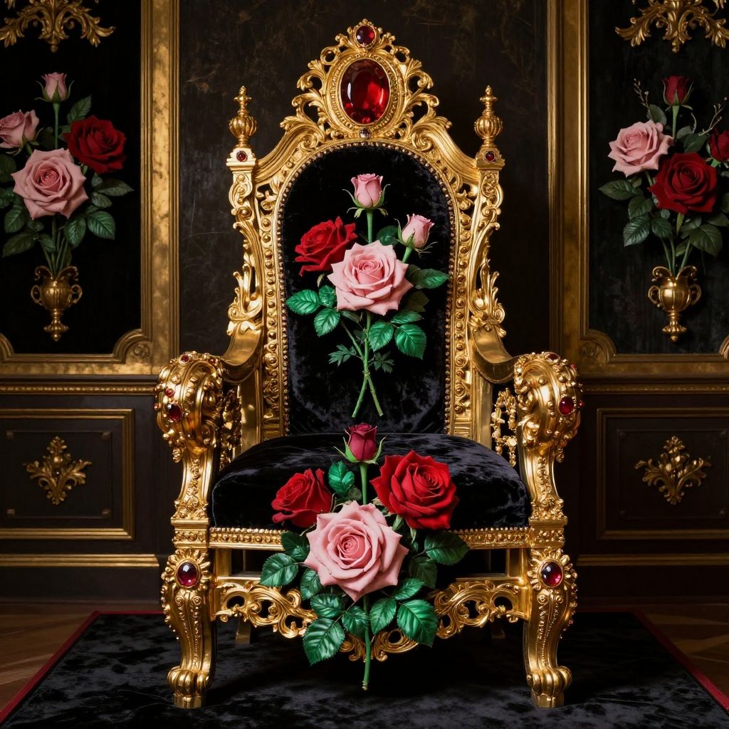 Imbue the image with visions of hope, wonderment, and majestic majesty., roses by ernst haeckel and paul rubens, velvet, antique, (painting on dark velvet and gold background:0.75), filigree, emerald and red, throne rooms on display with golden gemstones, low quality photography, clear details, dramatic light, with reflections, Photorealistic, light and shadows, panavision, macro lens, claesz.!! Award winning photography, y, E baugh shot, D800, shutter, f/1.5.7.7/7.5, shutter speed 1/7, ISO 200.6, canon eos.5k, 8k, unedited, ISO 200mm lens, RAW, studio lighting, editorial, f/1.3, rim l