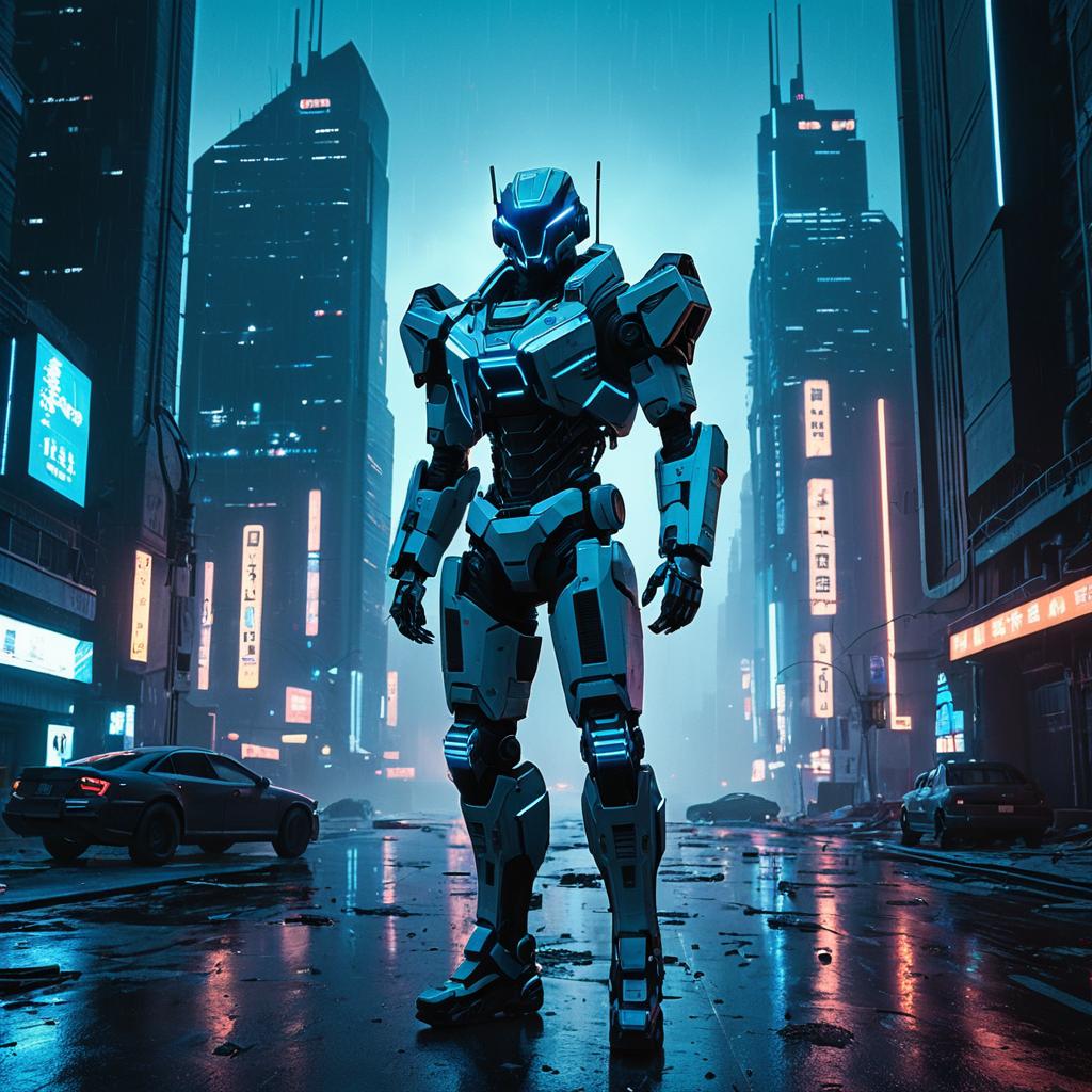 Futuristic Android in Cyberpunk City
