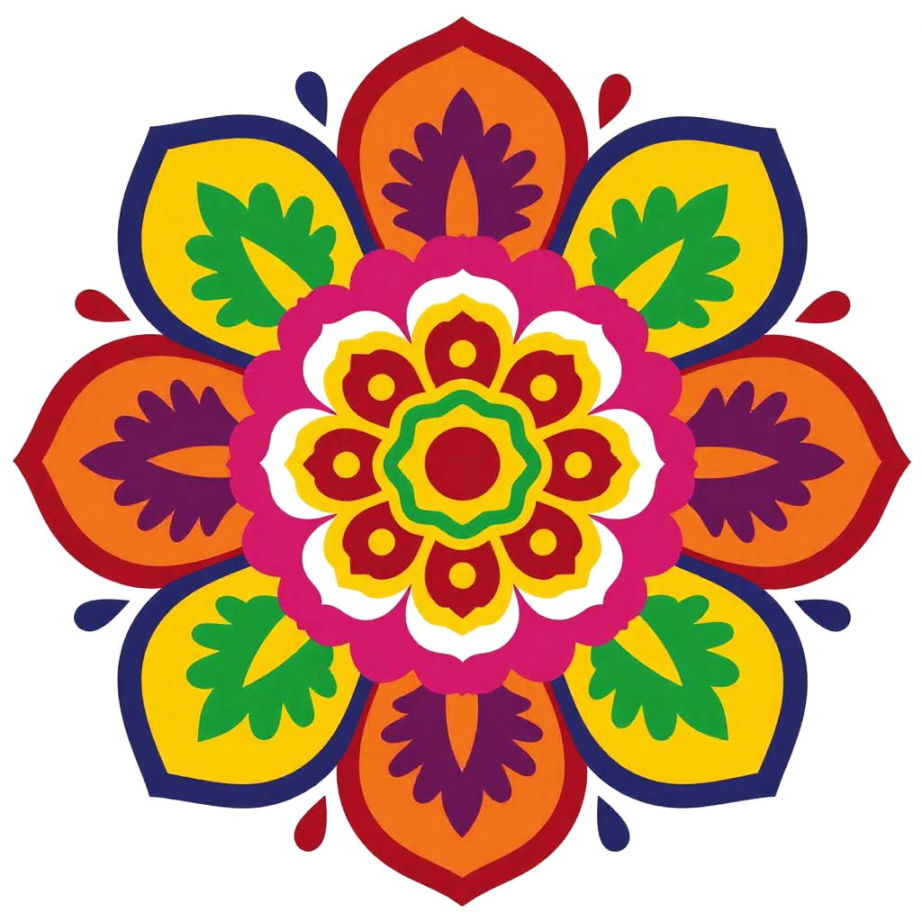 Mexican flower design vibrant and detailed, bright colors with traditional folk art patterns, intricate petals and bold outlines, decorative and festive style, high resolution