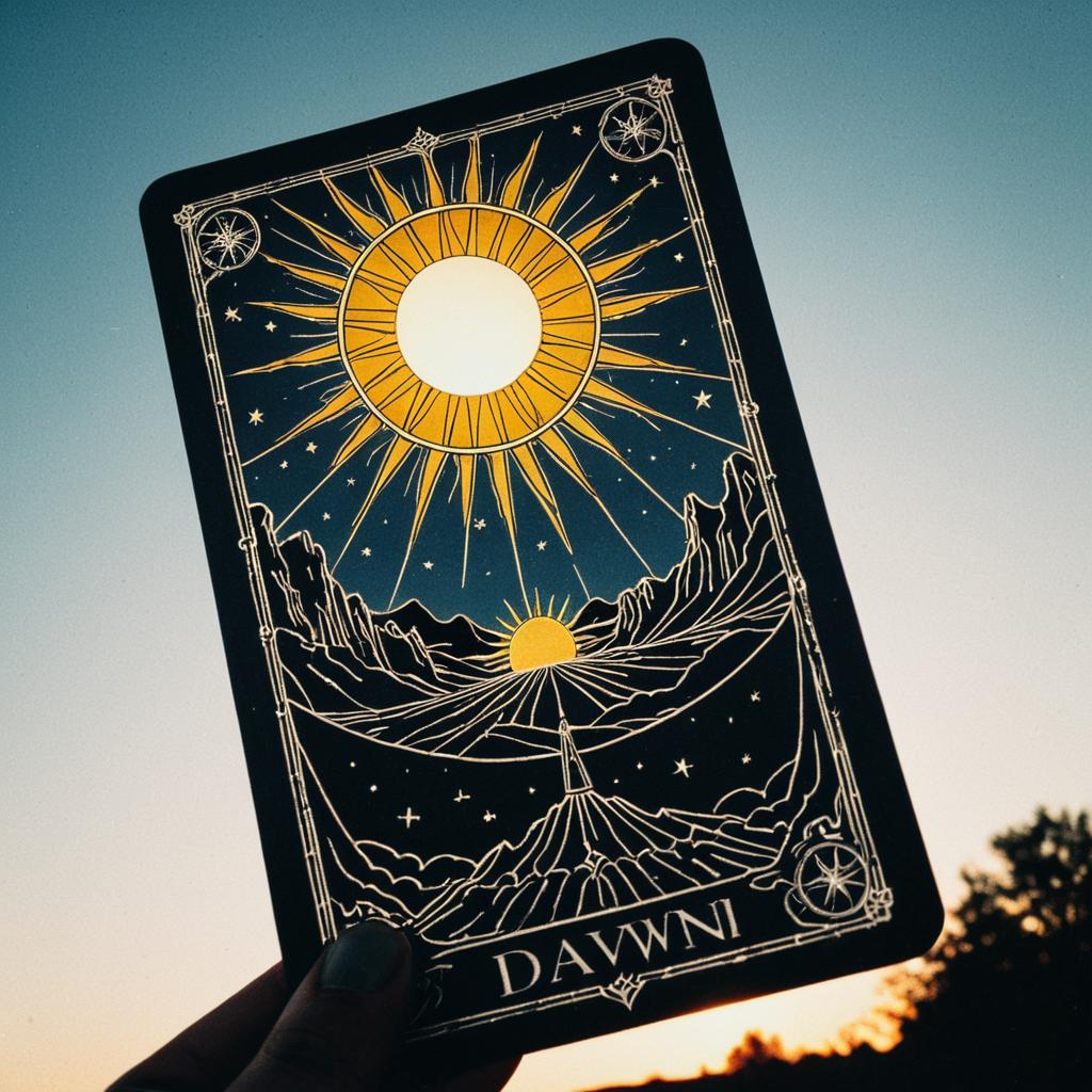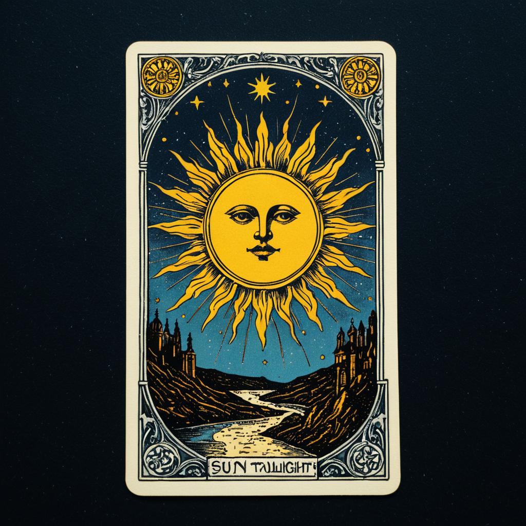 Look like a tarot card with a sun tracing the sky from afternoon to evening, expressive
