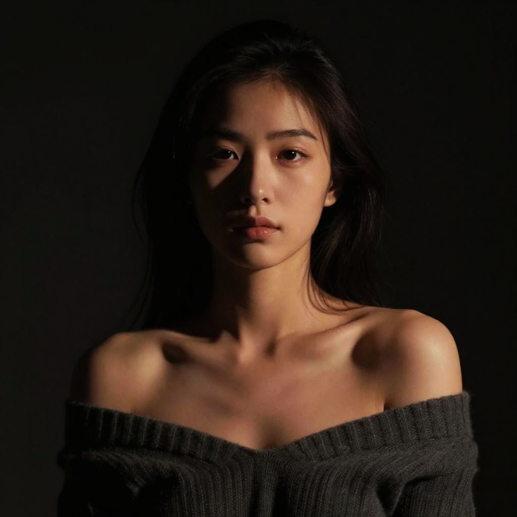 Photorealistic Dark Shadow Portrait of Girl