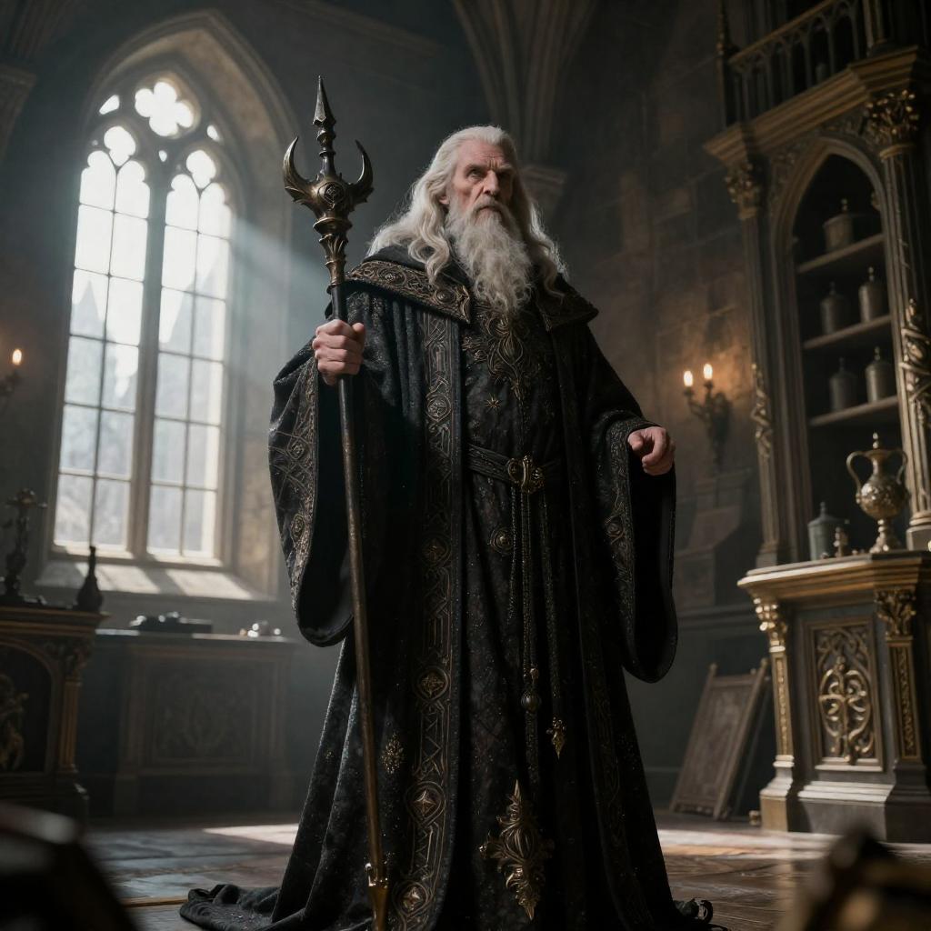 Elderly Evil Wizard in Luxurious Medieval Castle