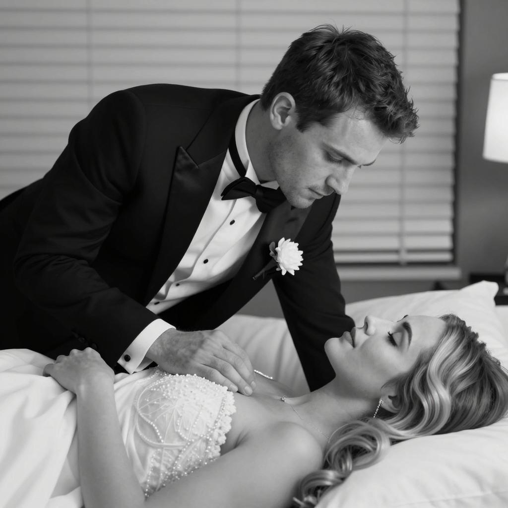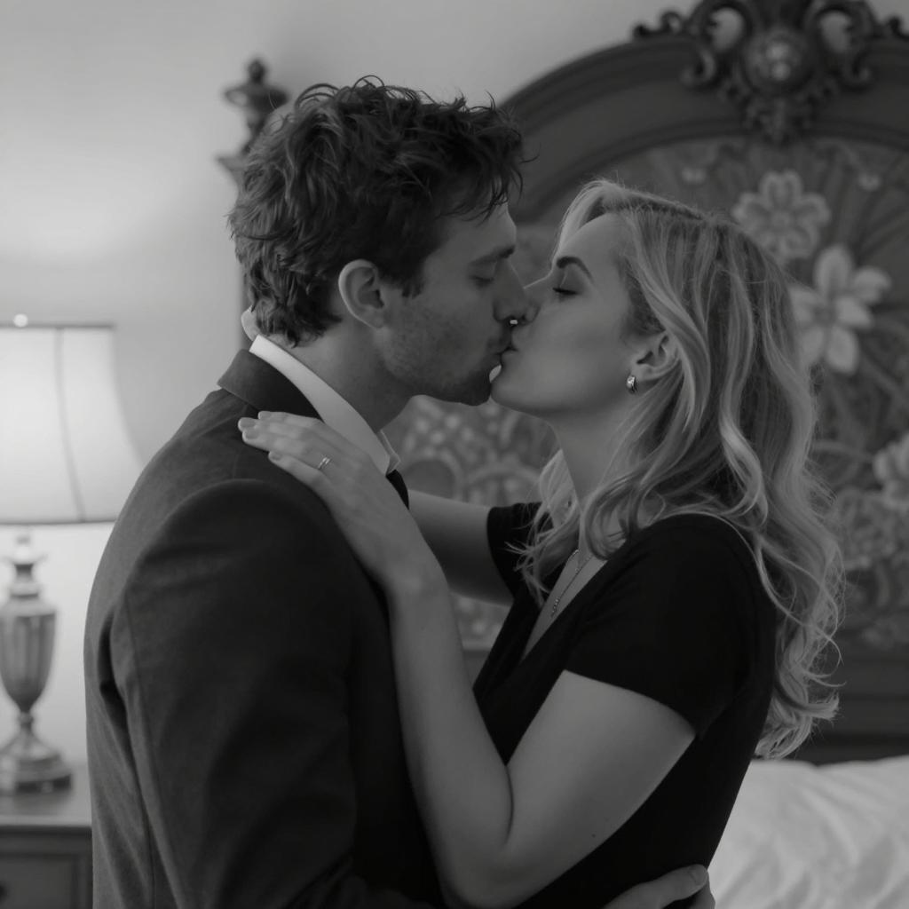 Intimate Black-and-White Kiss Moment