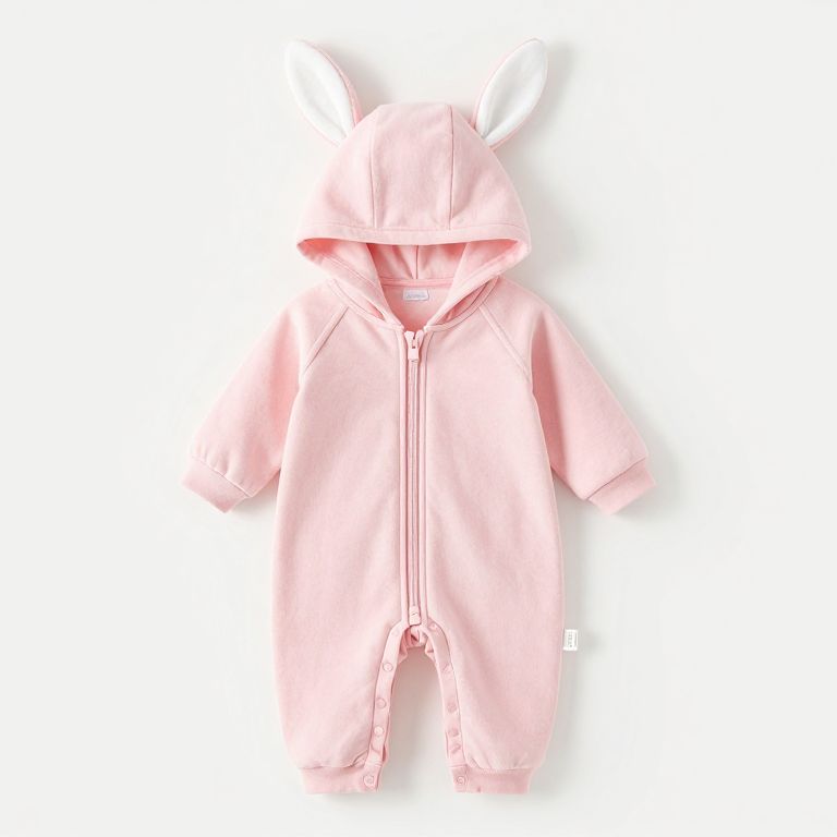 Zoocchini Hooded Baby Towel featuring a playful green bunny design with pink ears, rosy cheeks, and a cheerful smile, neatly folded to showcase its soft texture and cozy appeal.