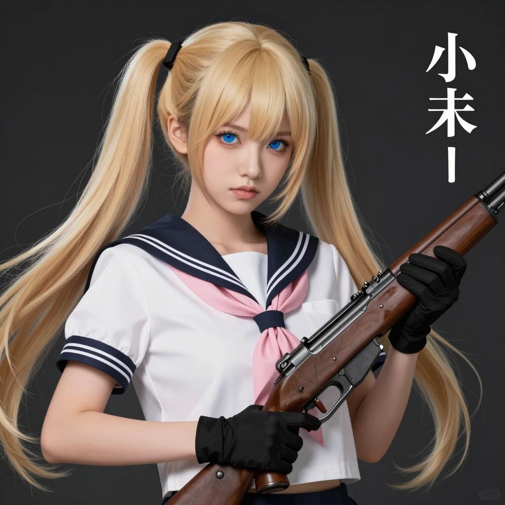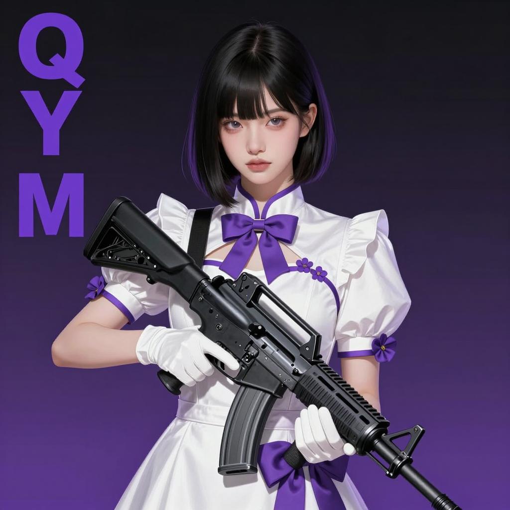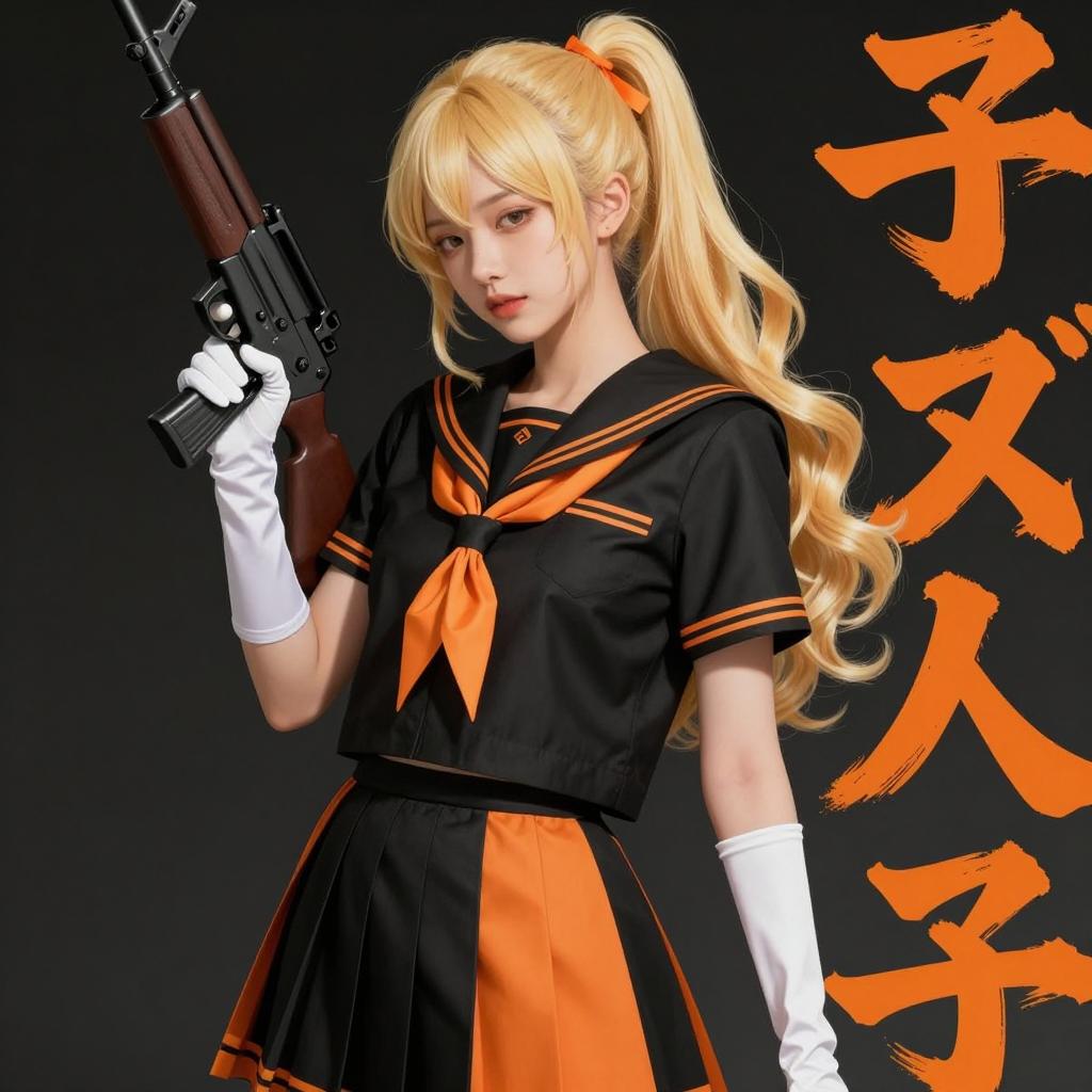 Woman Holding Metallic Gun in Pleated Skirt