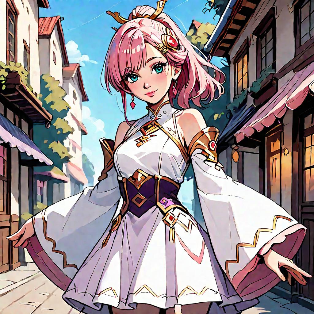 Anime Girl in Elegent Dress Outdoors