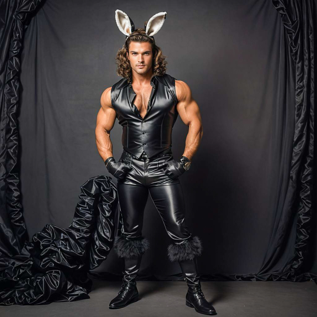 Non-binary Model in Rainbow Playboy Bunny Outfit