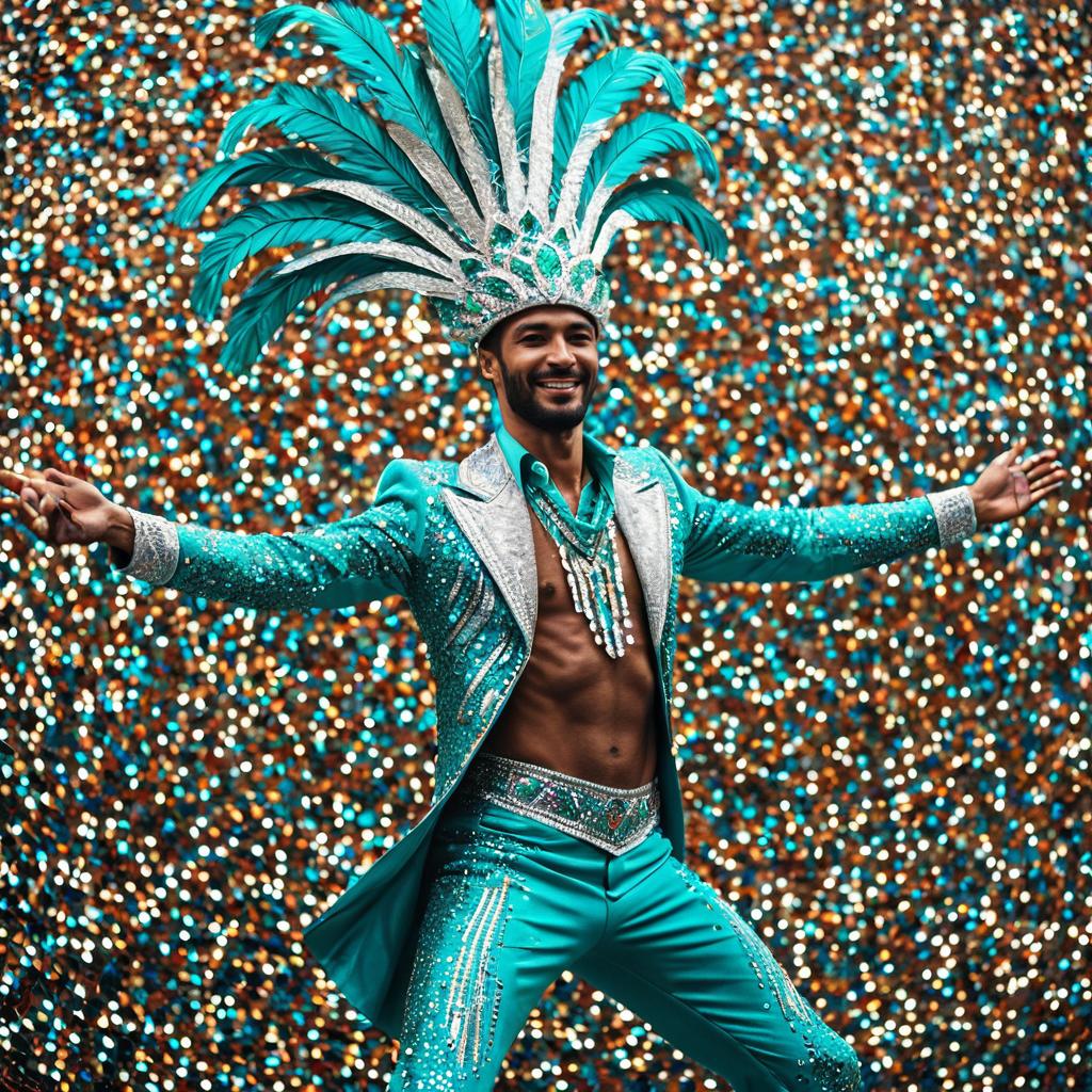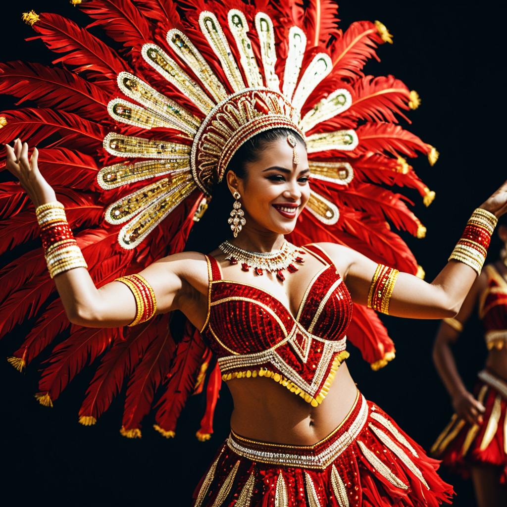 Elegant Female Samba Dancer in Red and Gold Carnival Costume