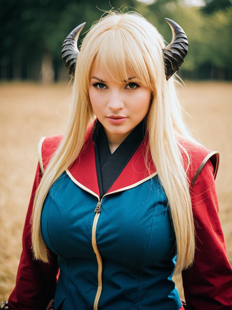 Photo-realistic cosplay photo of person in arakune costume. 1girl, monster, blonde hair, large breastslifestyle stock photo, shallow depth of field, lifestyle stock photography, shallow depth of field, natural lighting, warm tones, soft background blur, candid moments, vibrant colors, realistic textures, modern casual clothing. full body shot
