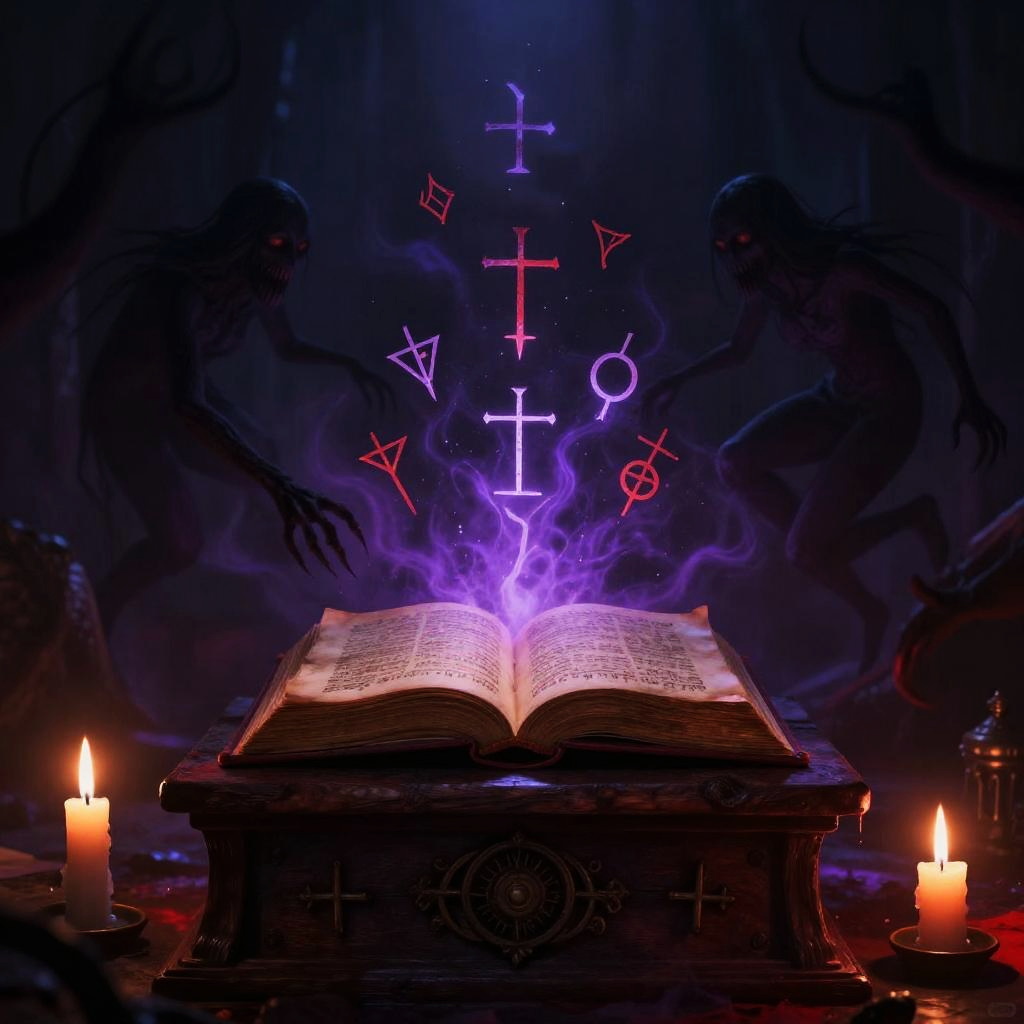 Cursed Ancient Book with Shadow Spirits