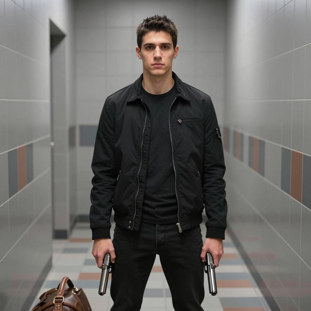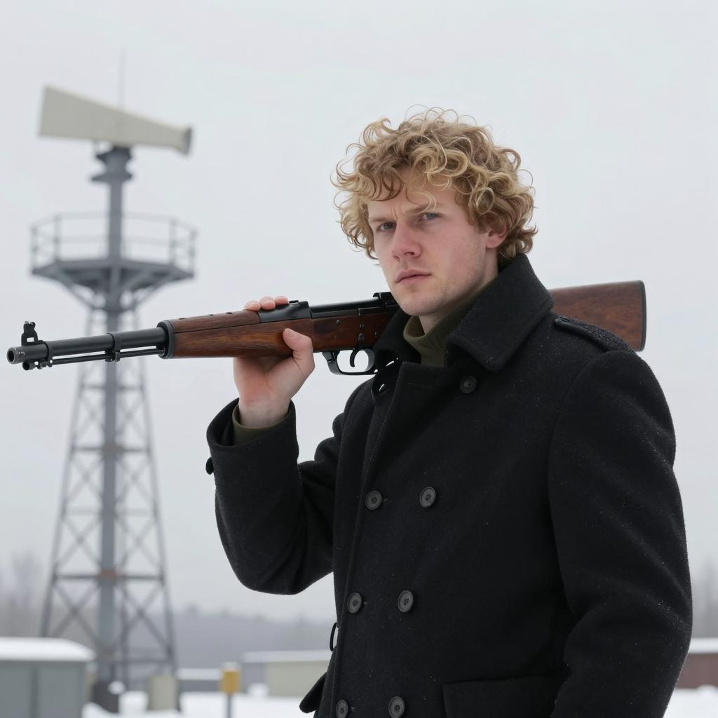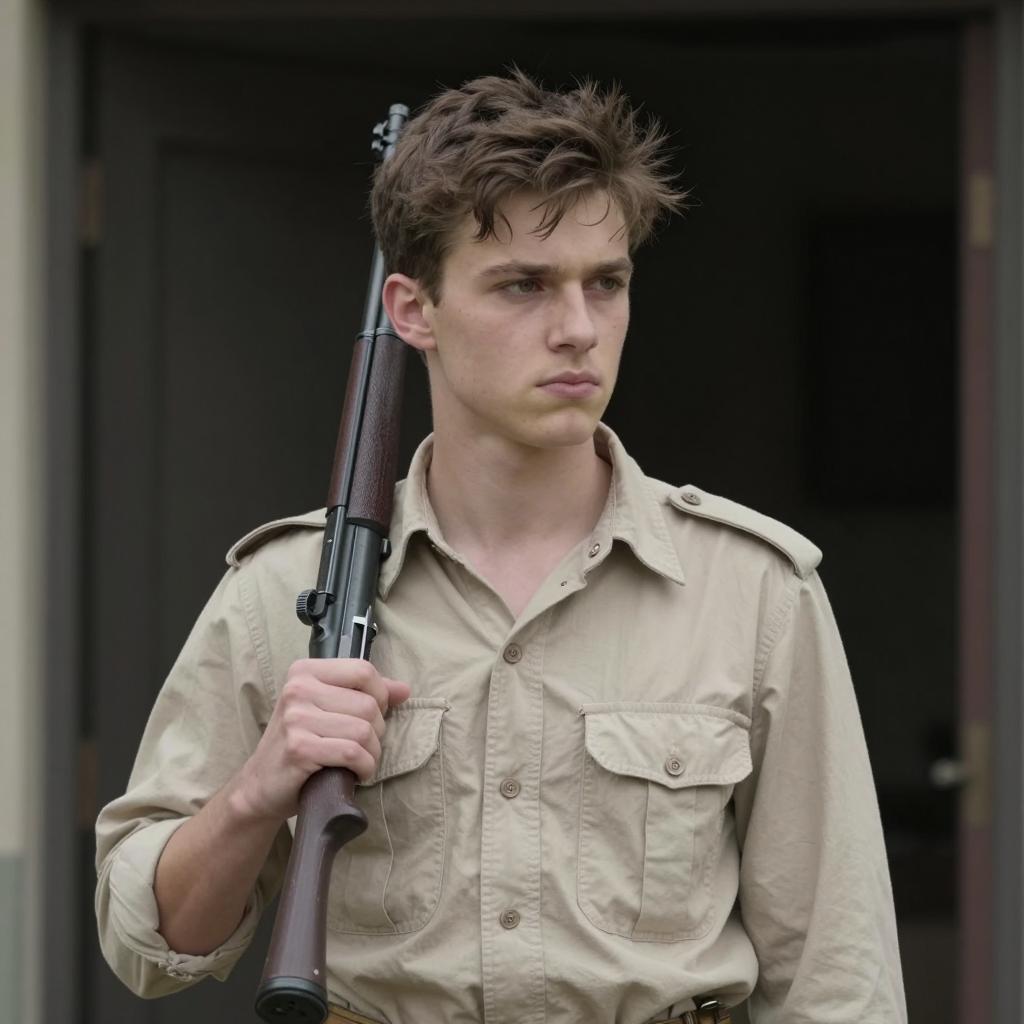 Serious Man with Rifle Against Wall