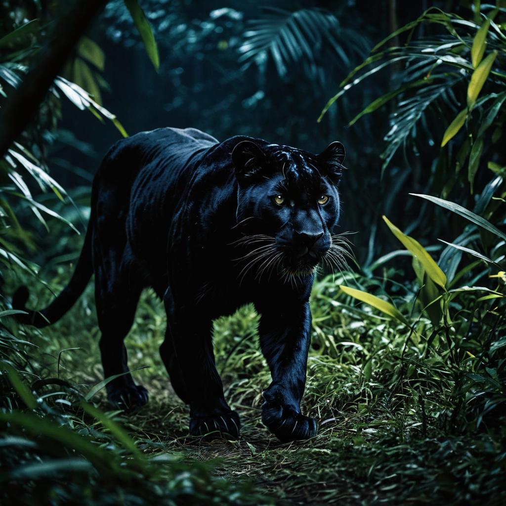 Black Panther in Dense Jungle at Night