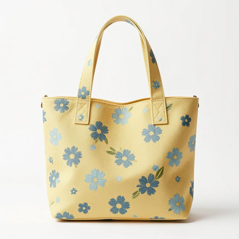 Singularitarianism ladies bag.small size.with handles.small flower design.yellow-blue color.aesthetics.quality details.,