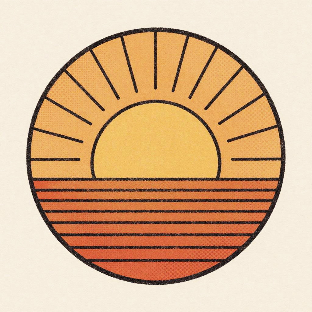 Hand-Drawn Retro Halftone Sunset