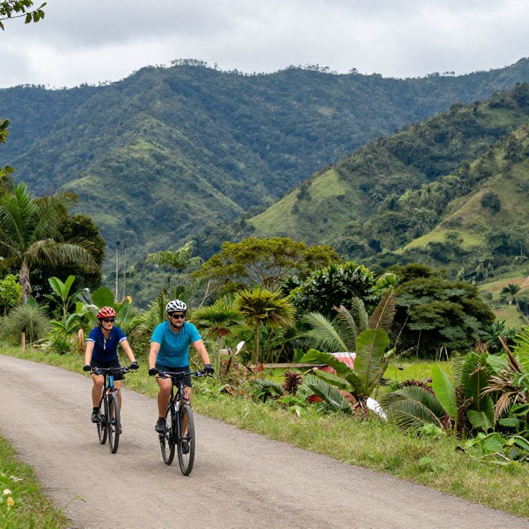Married Couple Biking in Tropical Mountains