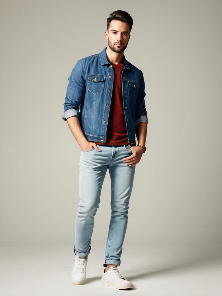 Man in Stylish Jeans Outfit, photorealistic detailed studio portrait --sref 1400