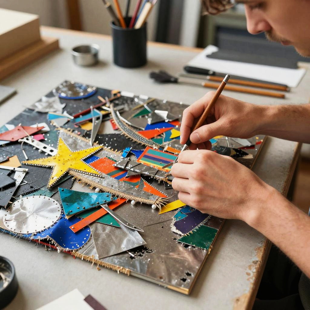 Bricolage Artist Crafting Mixed-Media Art