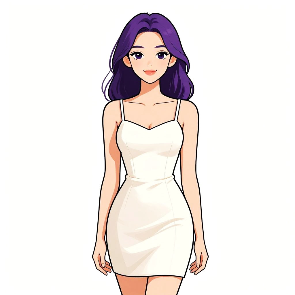 Woman with pretty face and pretty hair. Woman, modern minimalism, fitted turtleneck mini dress in a solid taupe shade, long sleeves, thigh-length hemline, paired with knee-high boots in a cream color, sleek straight hairstyle, white studio background. --sref 1467