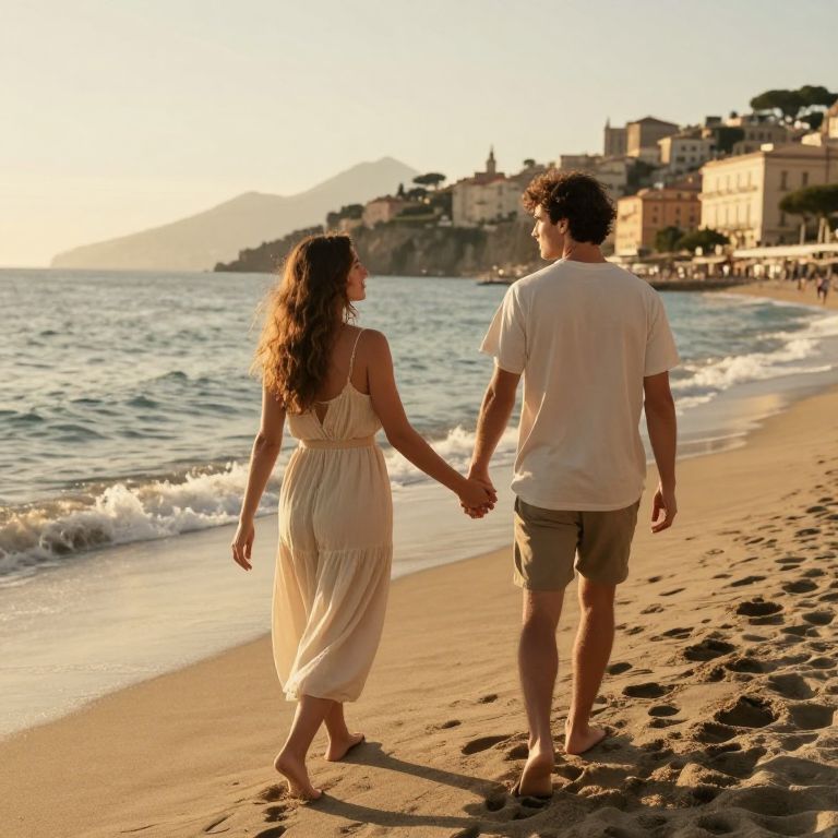 Married Couple At The Beach In Sorrento Coast.