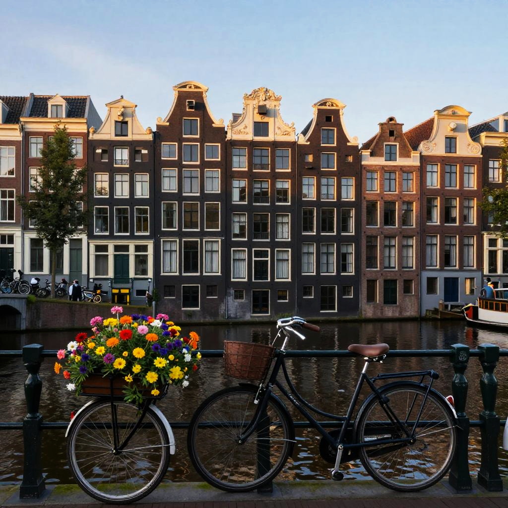 Landscape, photography, amsterdamcanalhouse, flower, bicycle, city, dawn, epic, cinematic, river, ornate, realistic, advntr