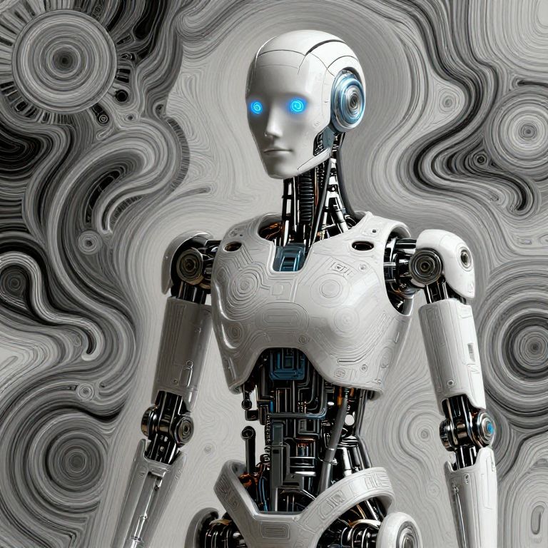 AI generator with image input, robotic AI entity creating complex art inspired by uploaded images, digital brush strokes forming intricate patterns, high contrast lighting, ultra-realistic 3D rendering, creative technological fusion