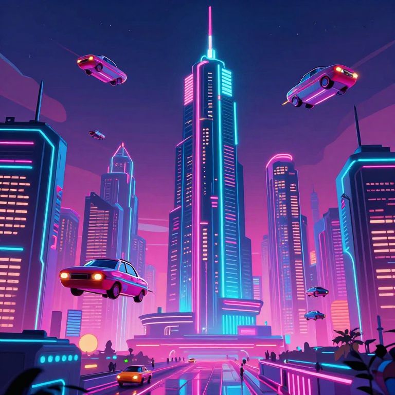 Picture to pixel art conversion depicting a bustling cyberpunk city at night, neon lights glowing, pixel characters walking, futuristic vehicles flying overhead, sharp contrasts, and vibrant pixel textures creating a dynamic urban scene.