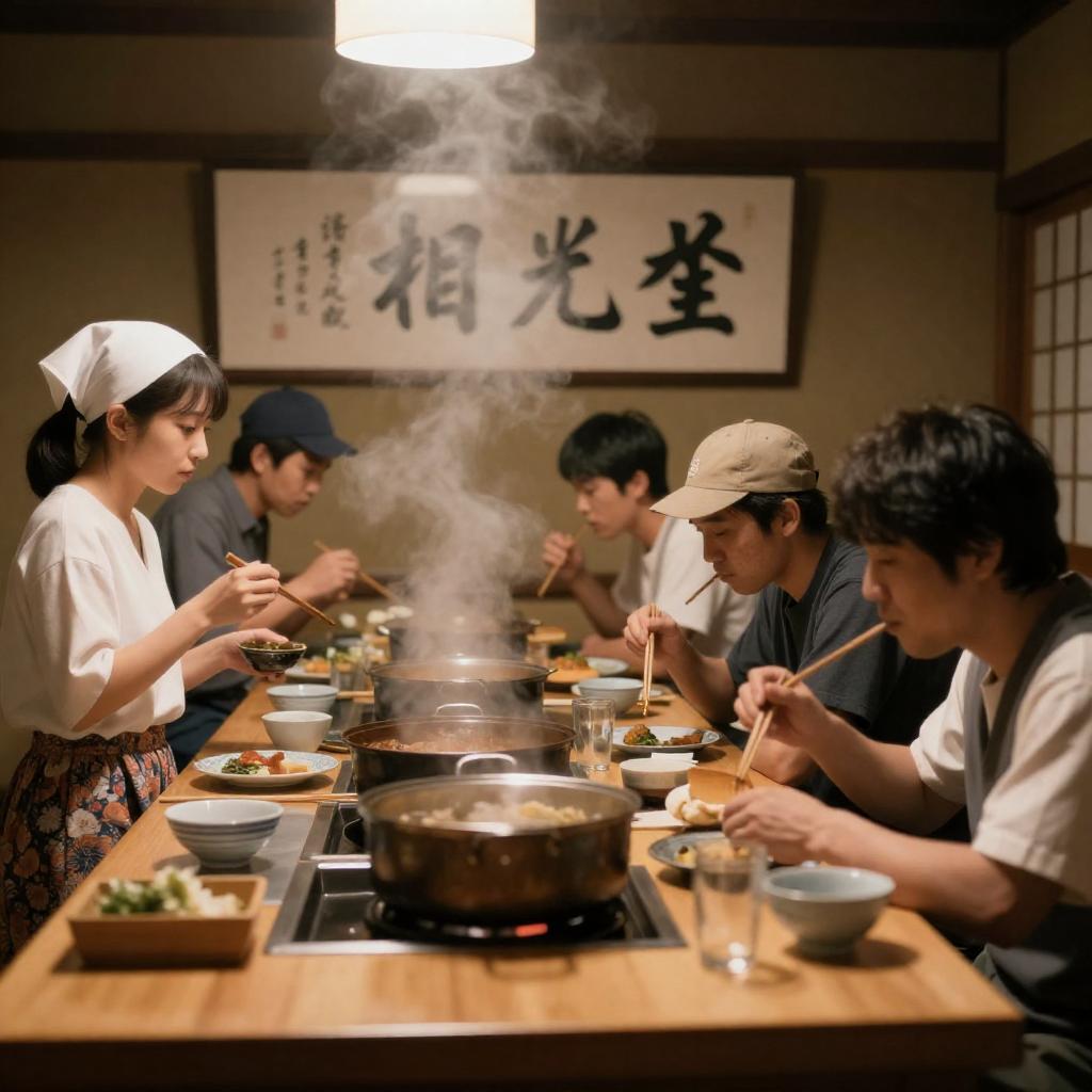 Gathering in a Traditional Japanese Kitchen