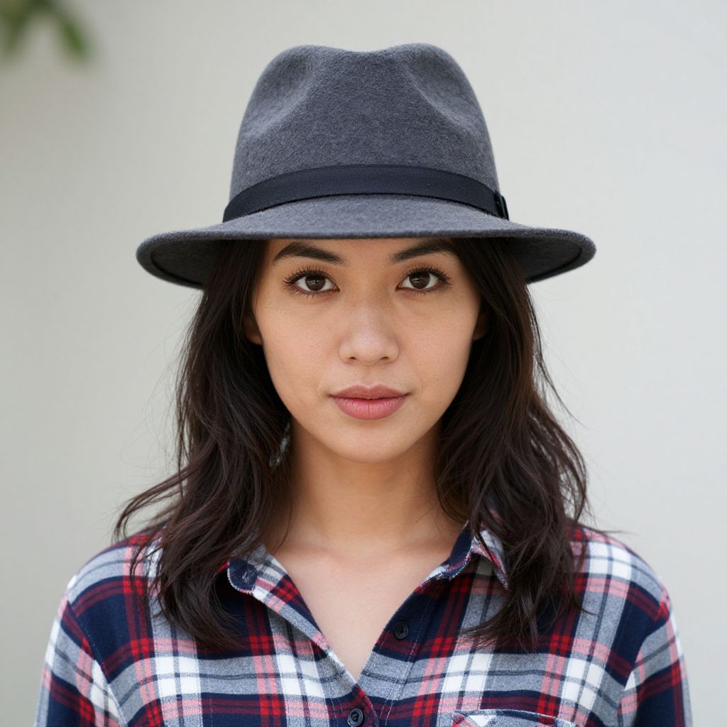 Woman in Fedora and Plaid Shirt